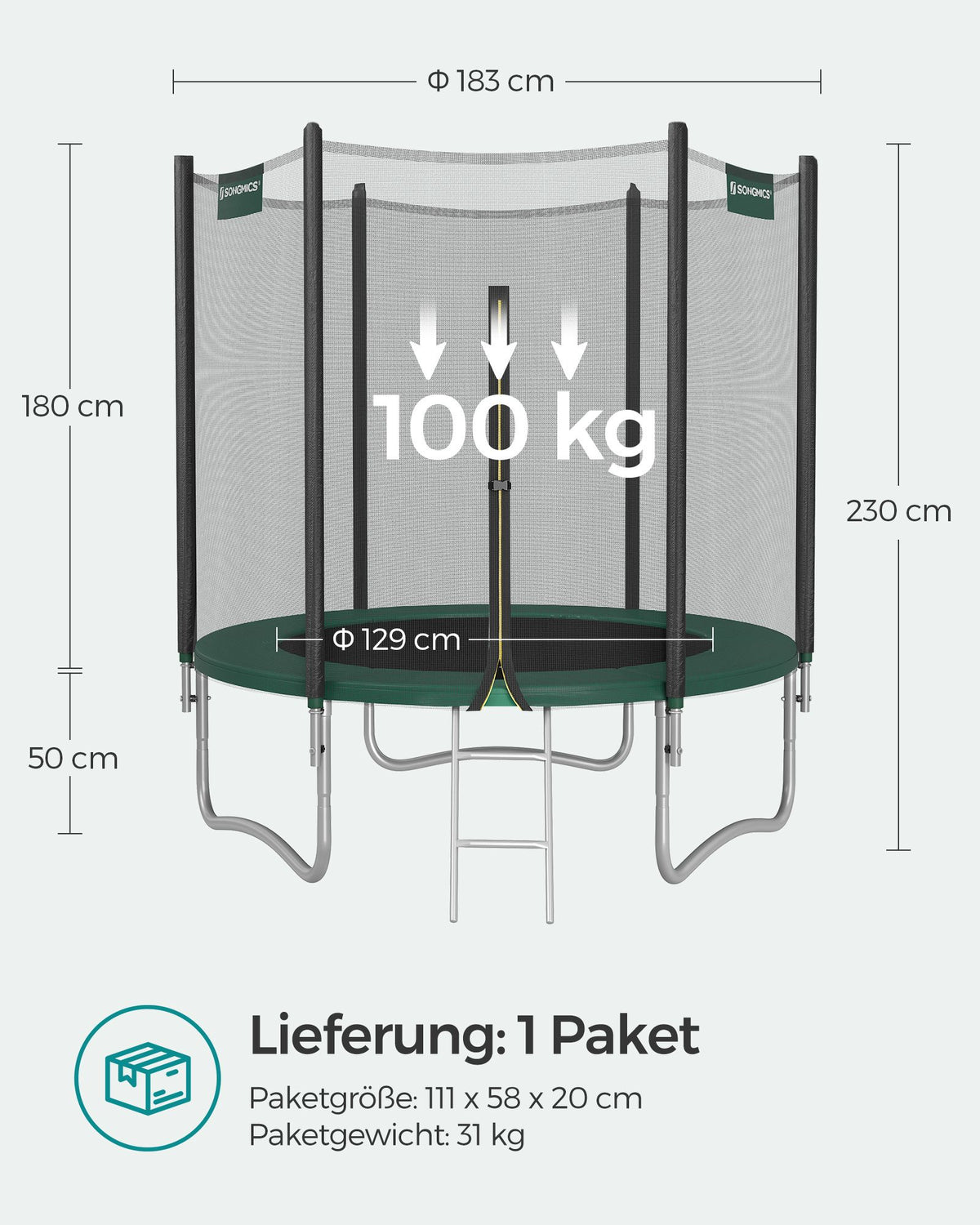 Trampoline Ø 183 cm met net voor tuin donkergroen