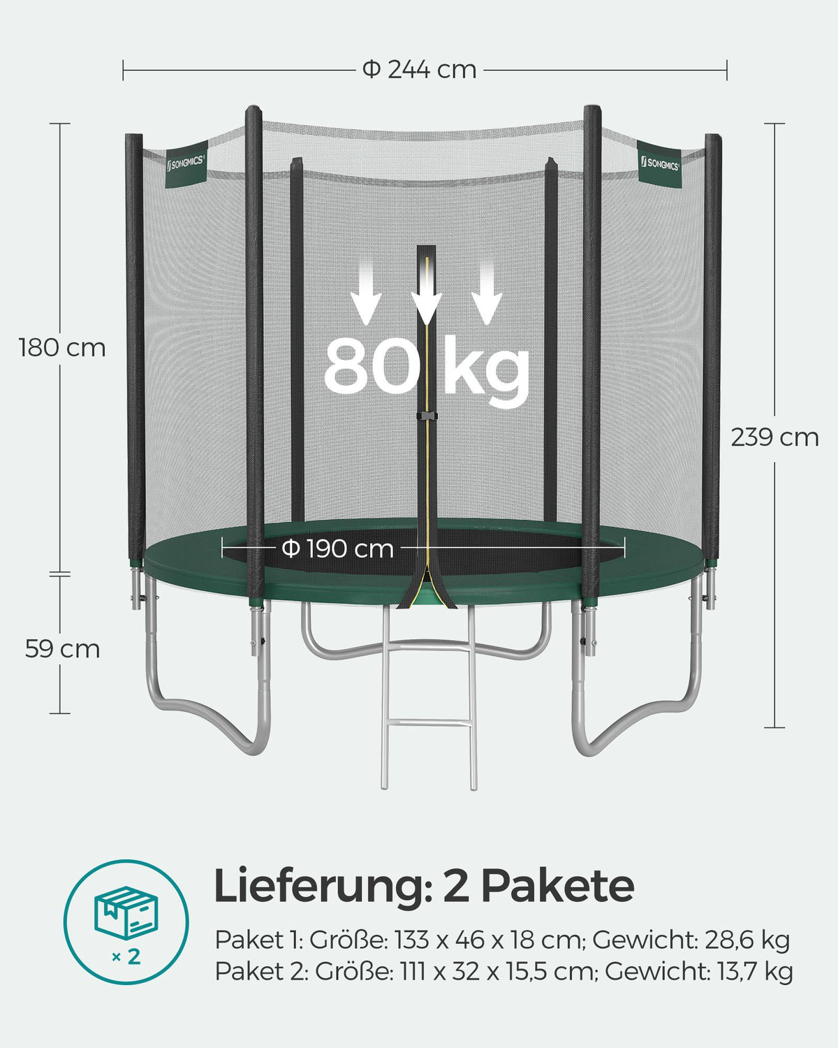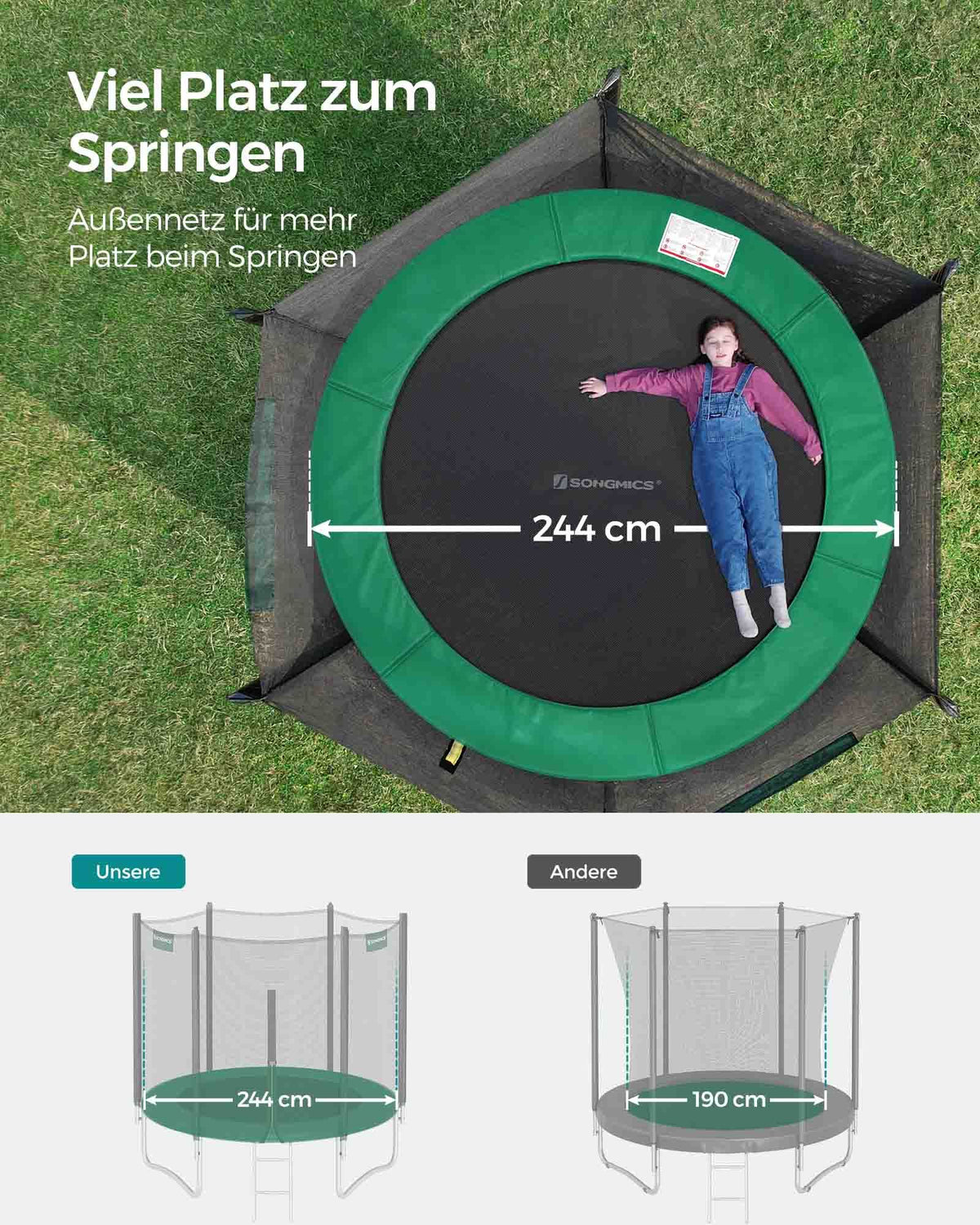 Trampoline Ø 244 cm met net voor tuin donkergroen