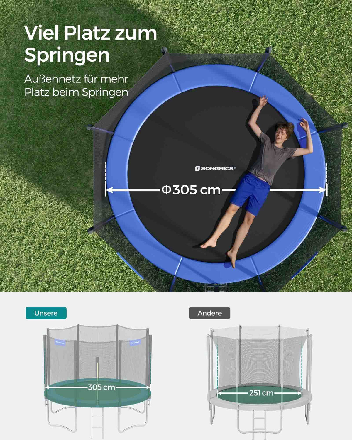 Trampoline Ø 305 cm Zwart-Blauw