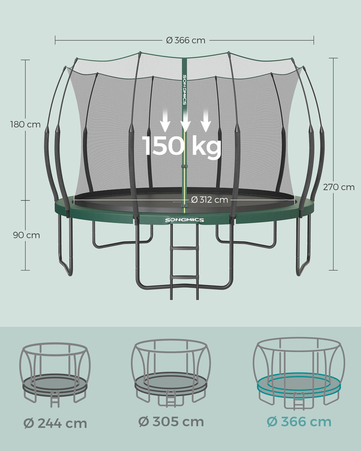 Trampoline Ø 366 cm met rits junglegroen