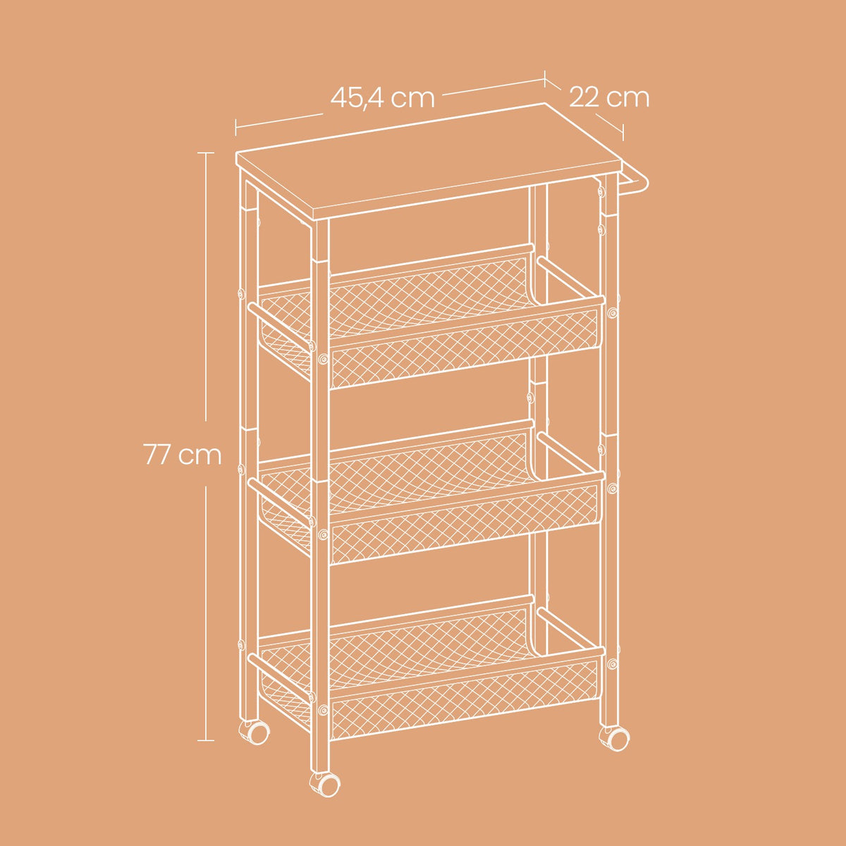 Trolley 4 niveaus, keukentrolley smal, nisplank 4 x 77 cm - LRCB35033B01