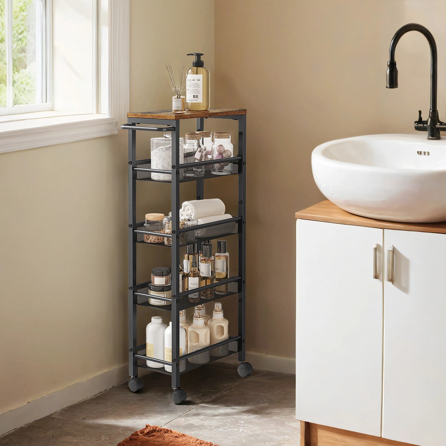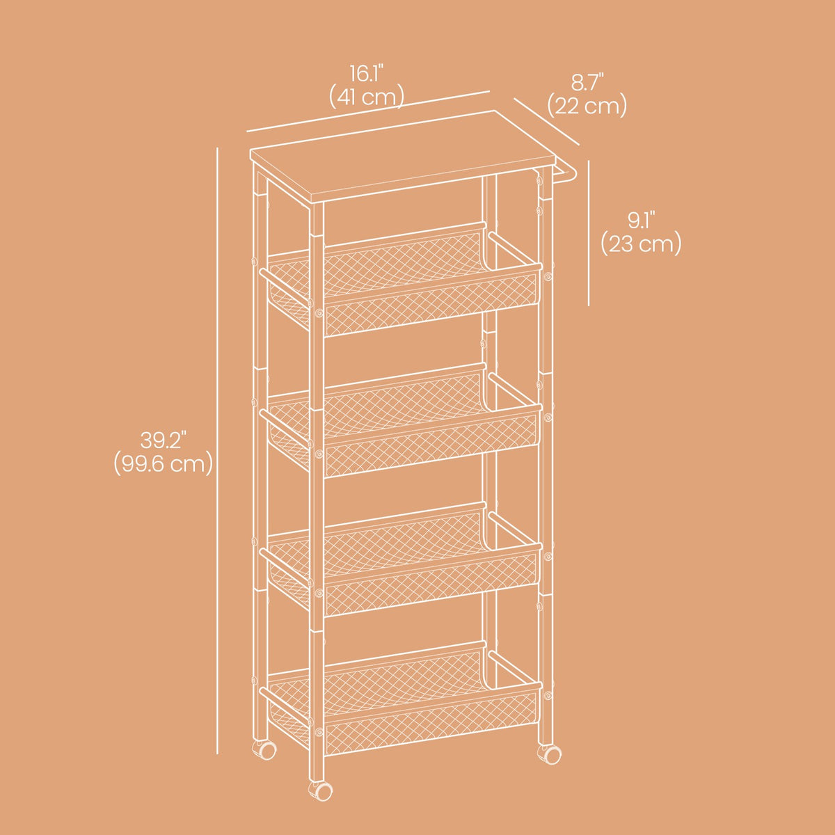 Trolley 5 niveaus, keukentrolley smal, nisplank 6 cm