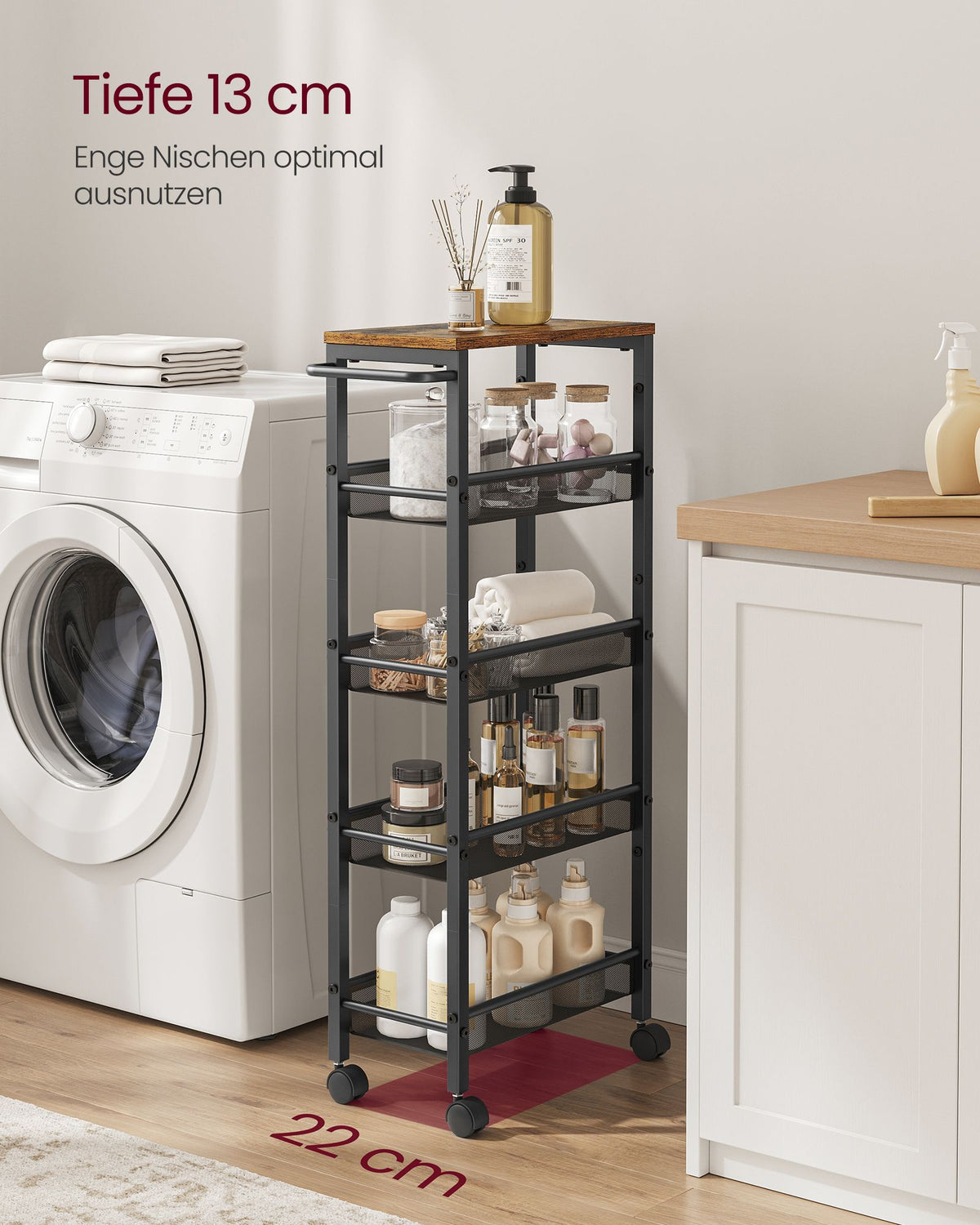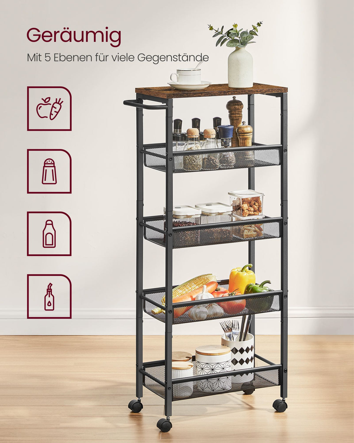 Trolley 5 niveaus smal vintage bruin-zwart 6 cm - LRC035B01