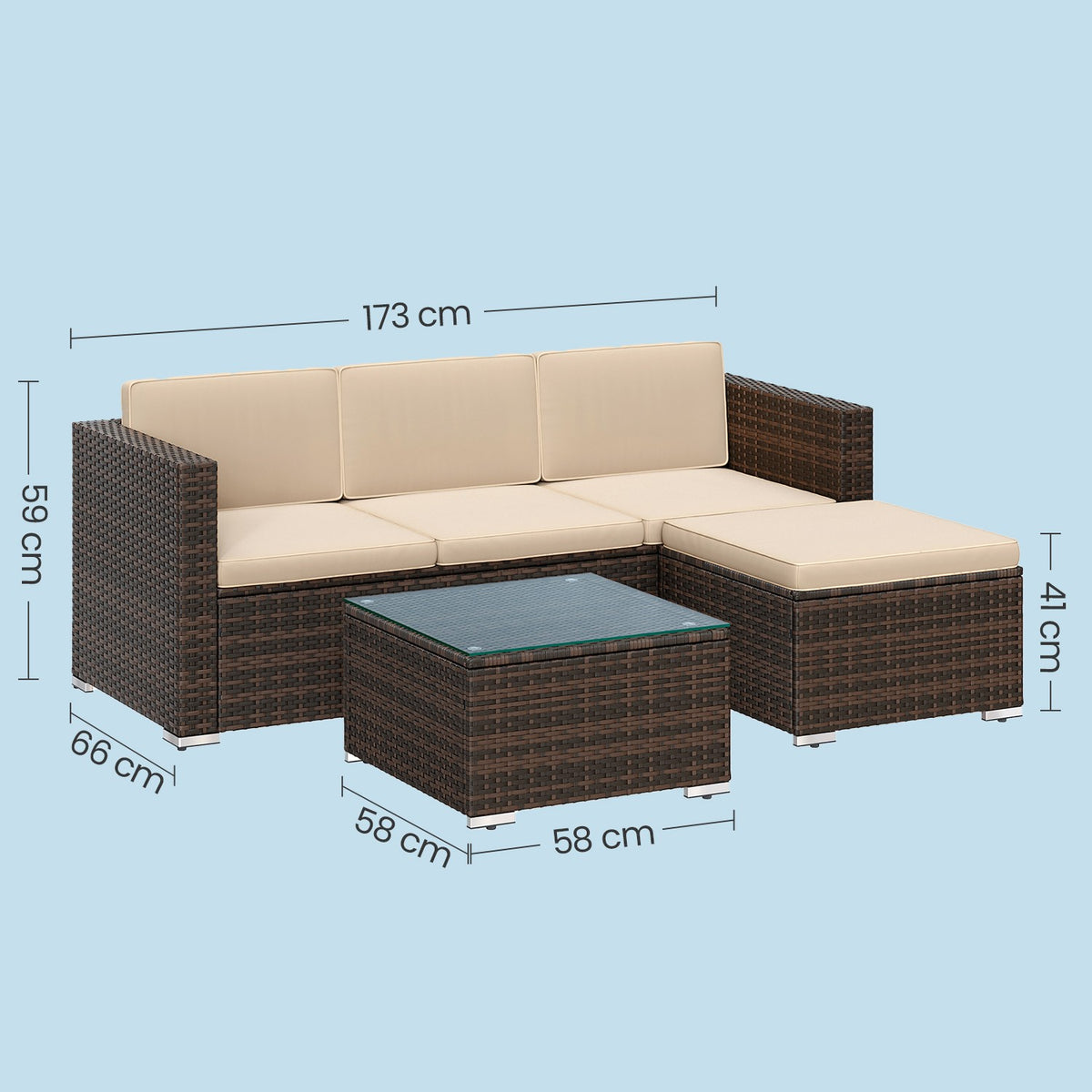 Tuinmeubelset, terrasmeubelen van PE polyrotan, balkonmeubelen met kussens en glazen tafel 173 x 60 x 66 cm - GGFB35005K03