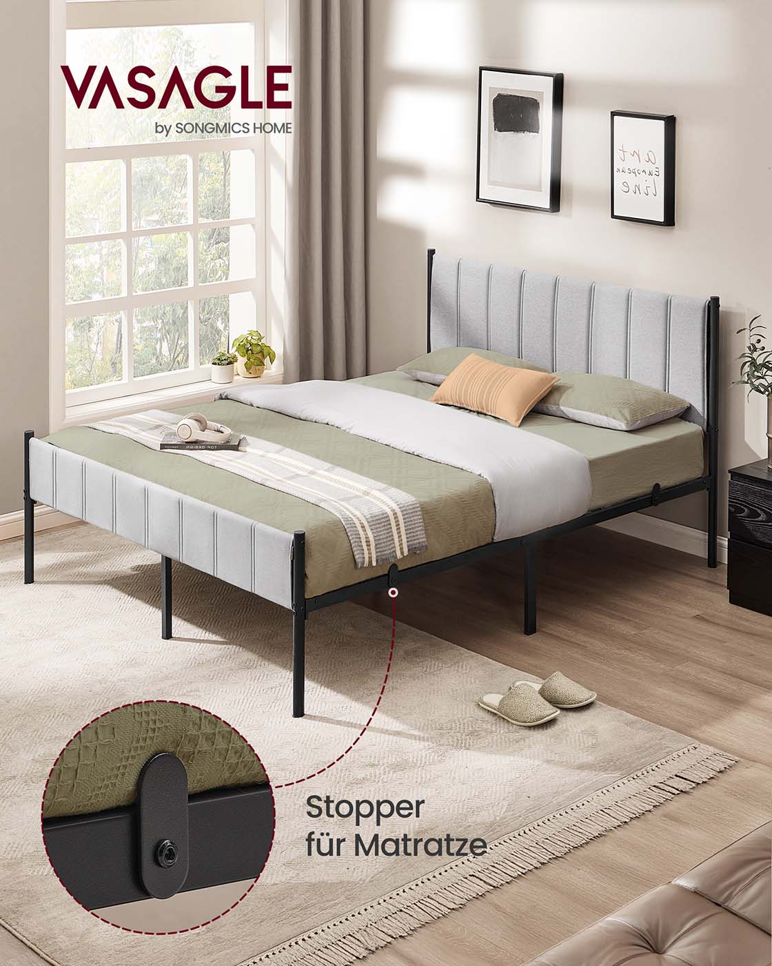 Tweepersoonsbedframe 160 x 200 cm met stalen lattenbodem duifgrijs