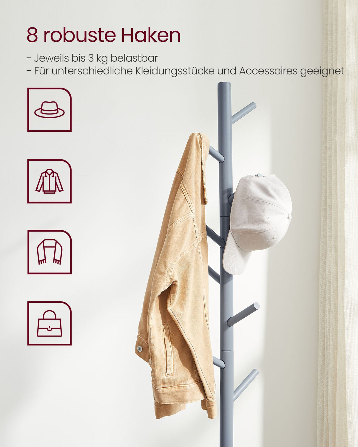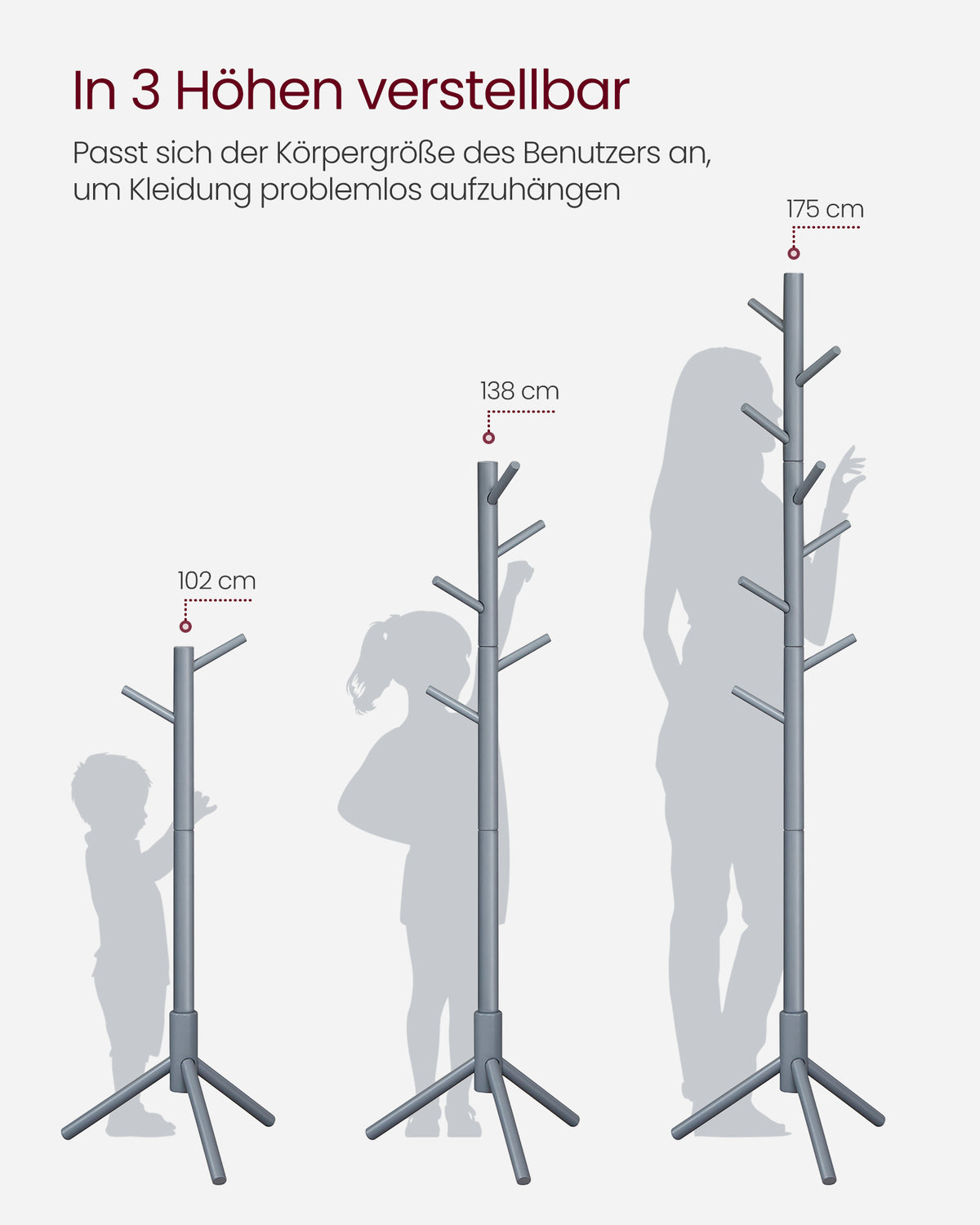 Verstelbare houten kapstok, zwart 47 x 47 x 175 cm
