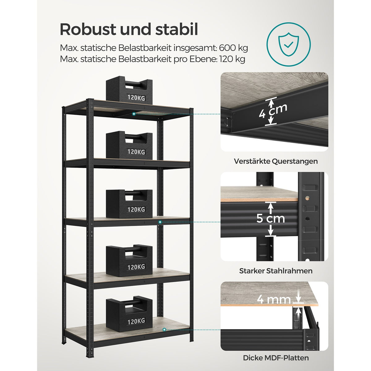 Verstelbare staande plank met 5 planken 50 x 100 x 200 cm greige-zwart