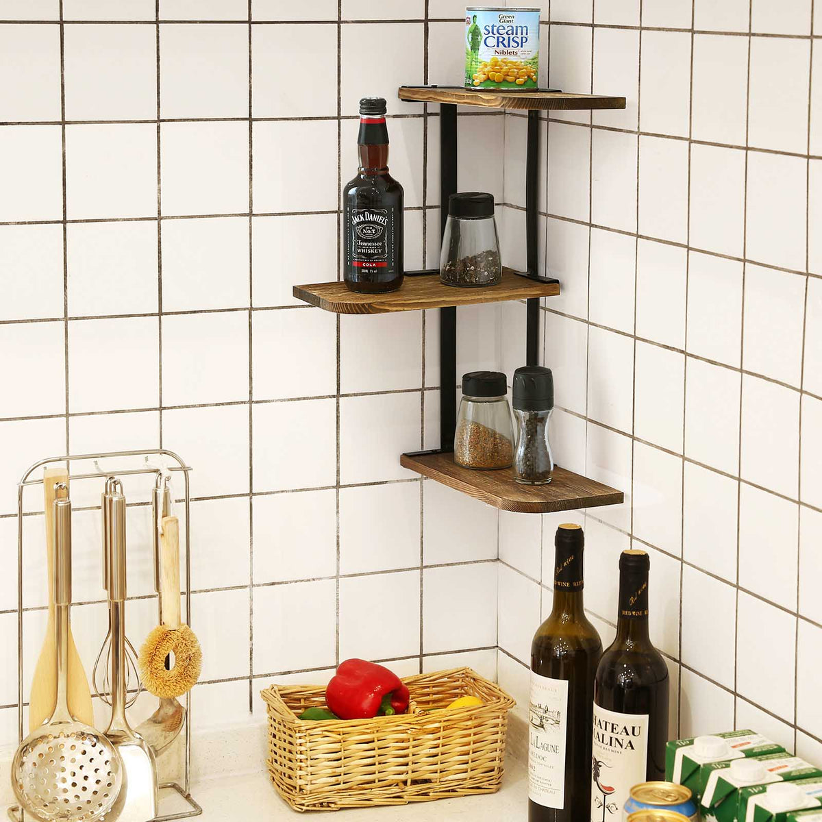 Verstelbare wandplank met houtlook 20 cm