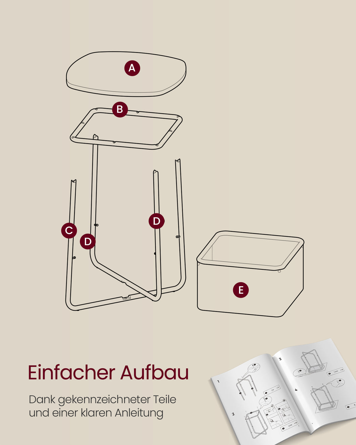 Vierkante bijzettafel met stoffen mand 40 x 40 x 50 cm