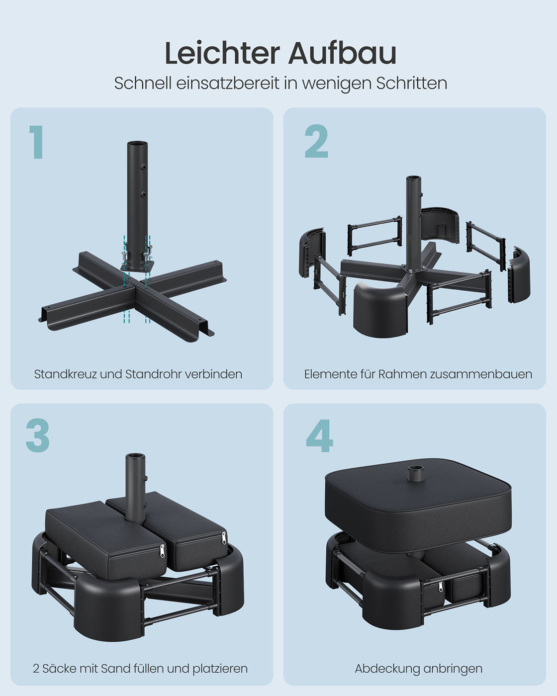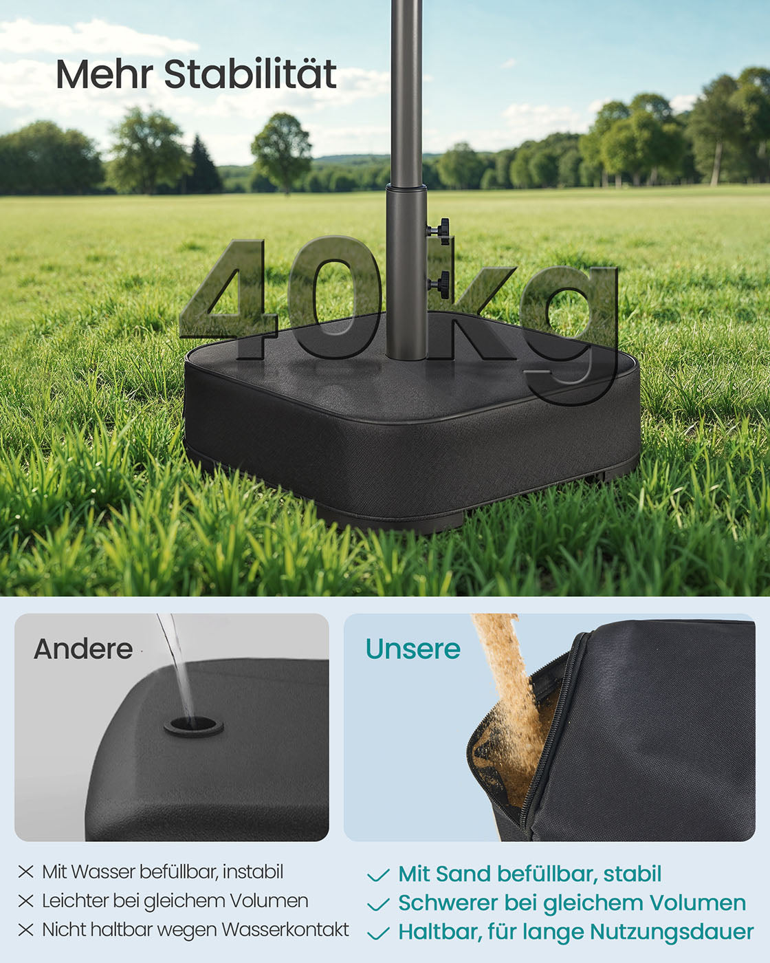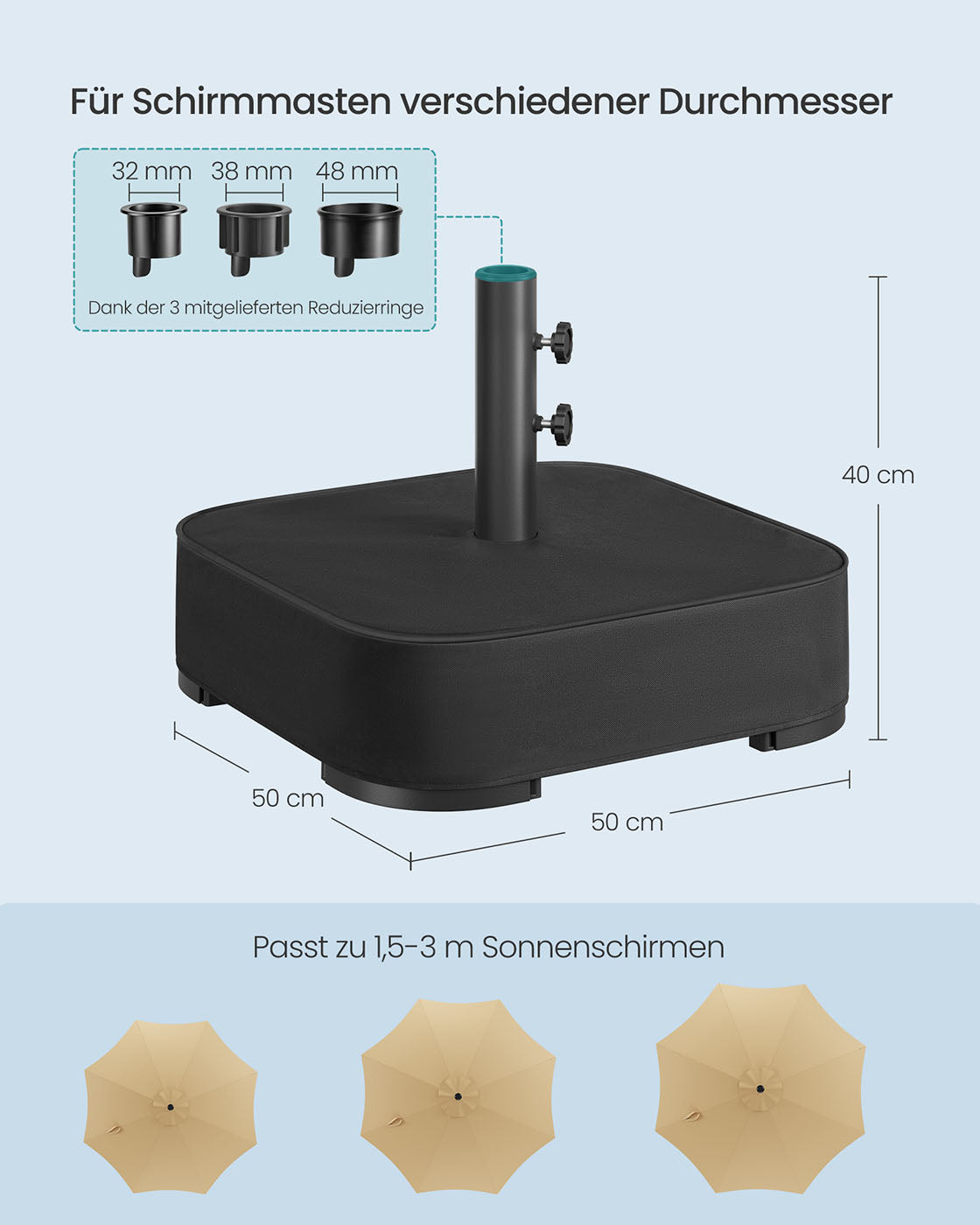Vierkante parasolvoet voor 1,5-3 m parasol, zwart 50 x 50 x 40 cm