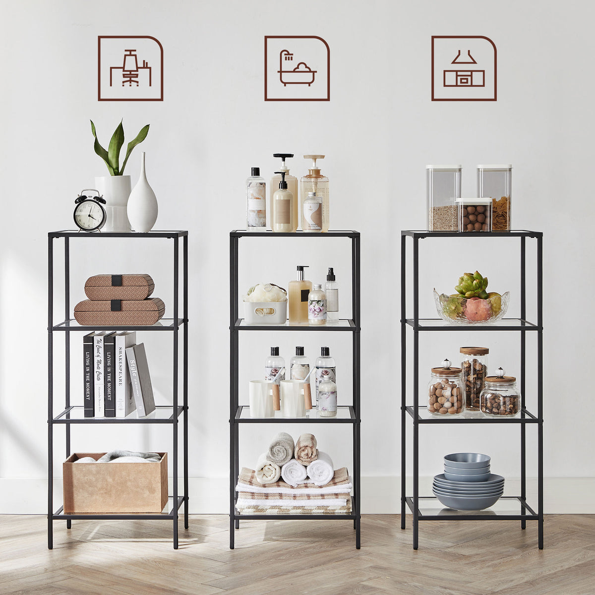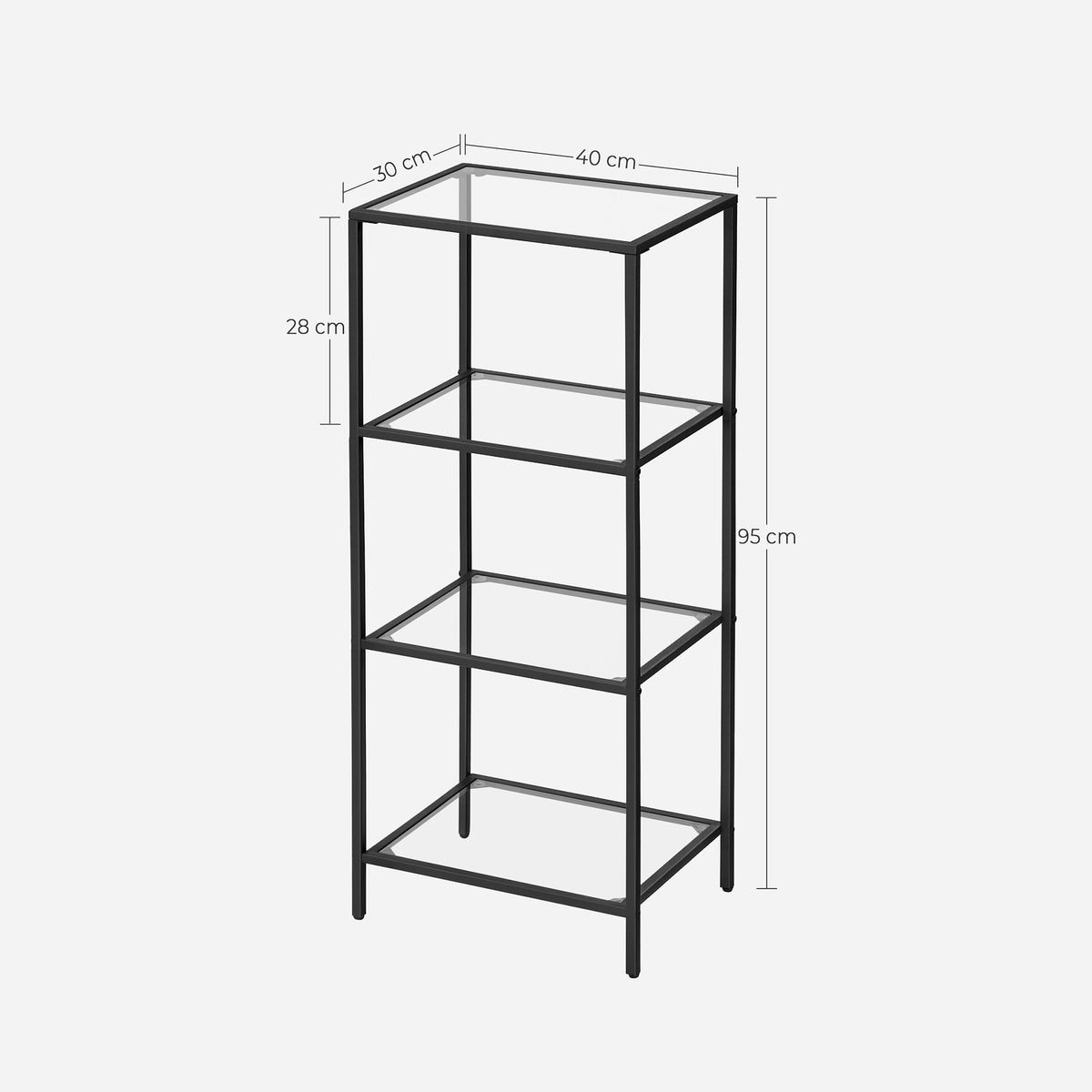 Vrijstaande plank met 4 planken van zwart gehard glas 40 x 30 x 95 cm
