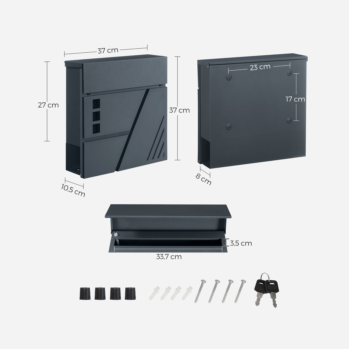 Wandbrievenbus met kijkvenster antraciet 37 x 10,5 x 37 cm