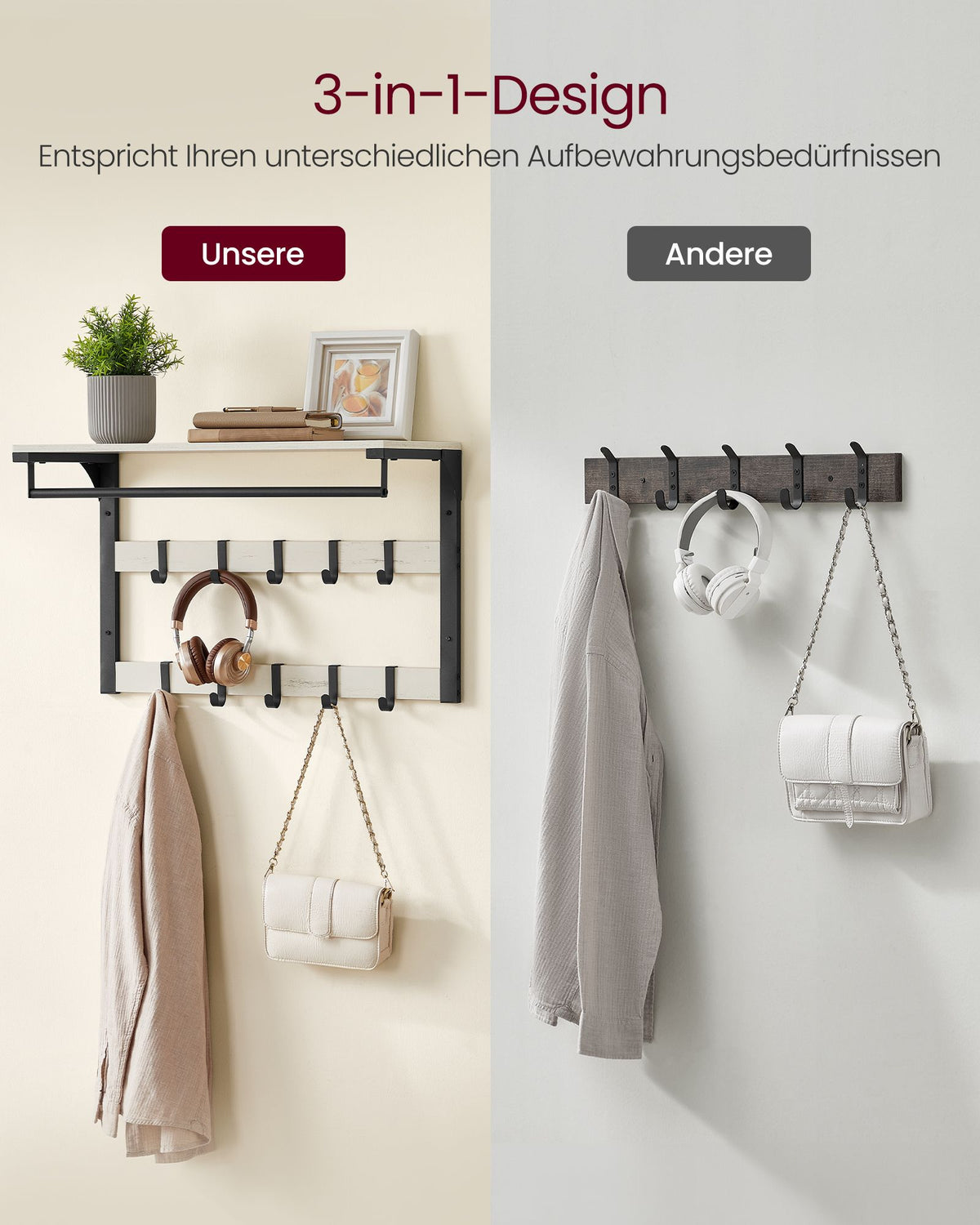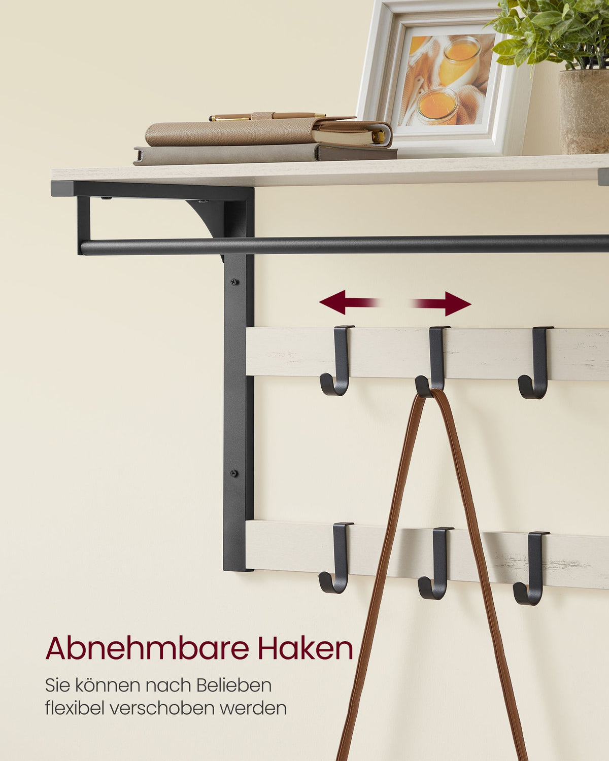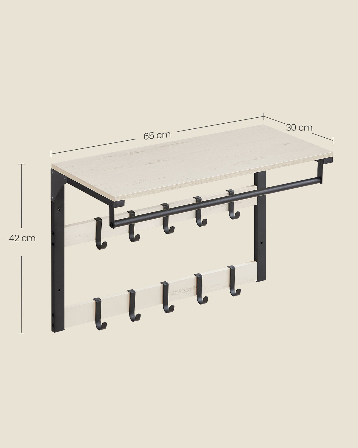 Wandkapstok met plank en 10 haken vintage wit-zwart 30 x 65 x 42 cm