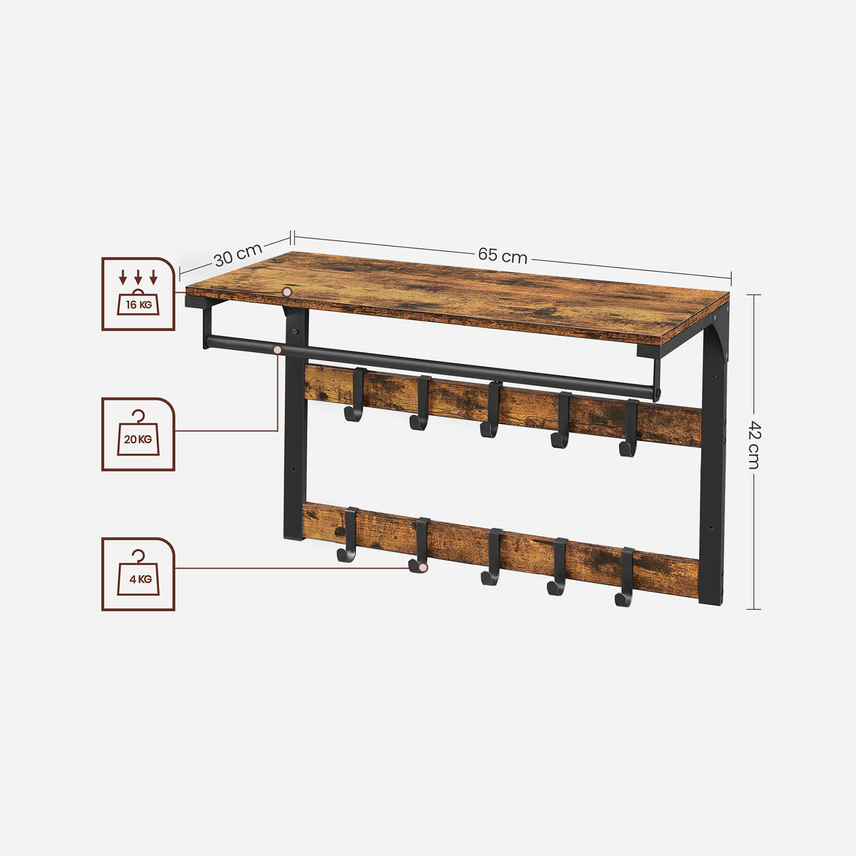 Wandkapstok met plank industriële stijl 65 x 30 x 42 cm