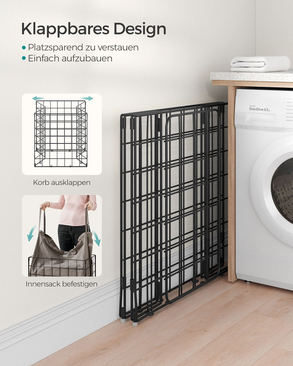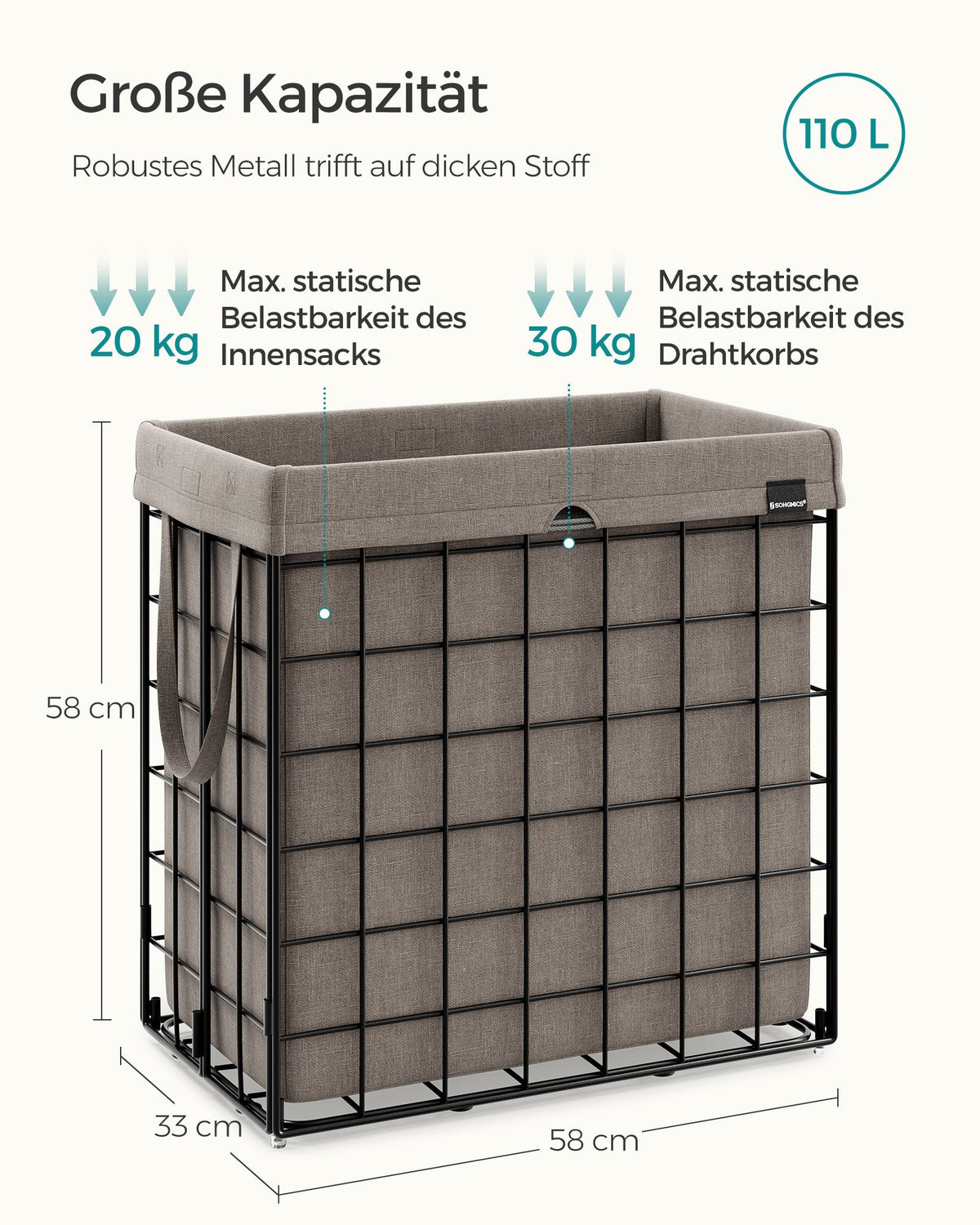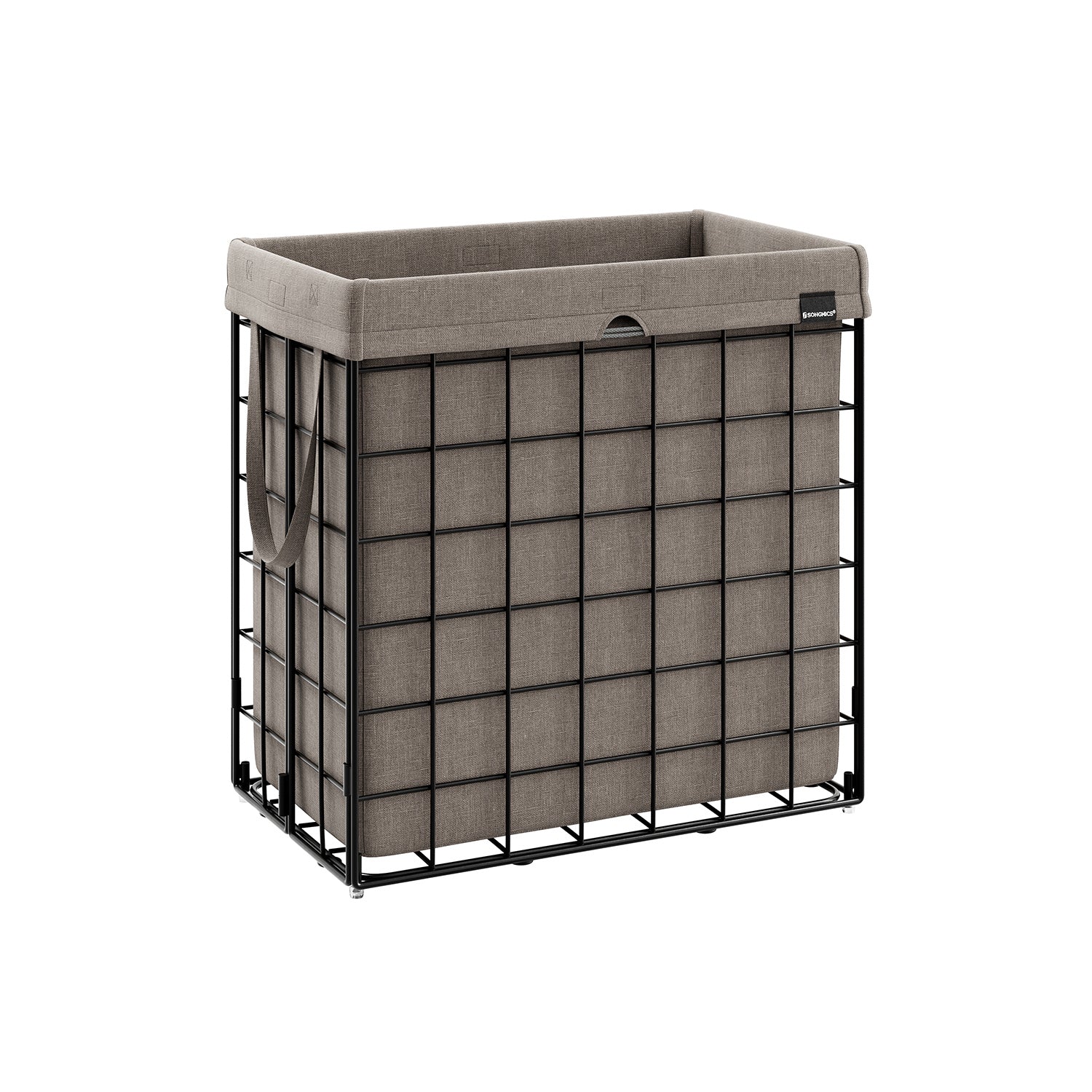 Wasmand 110 L opvouwbaar metalen draadframe zwart-kameelbruin 58 x 33 x 58 cm