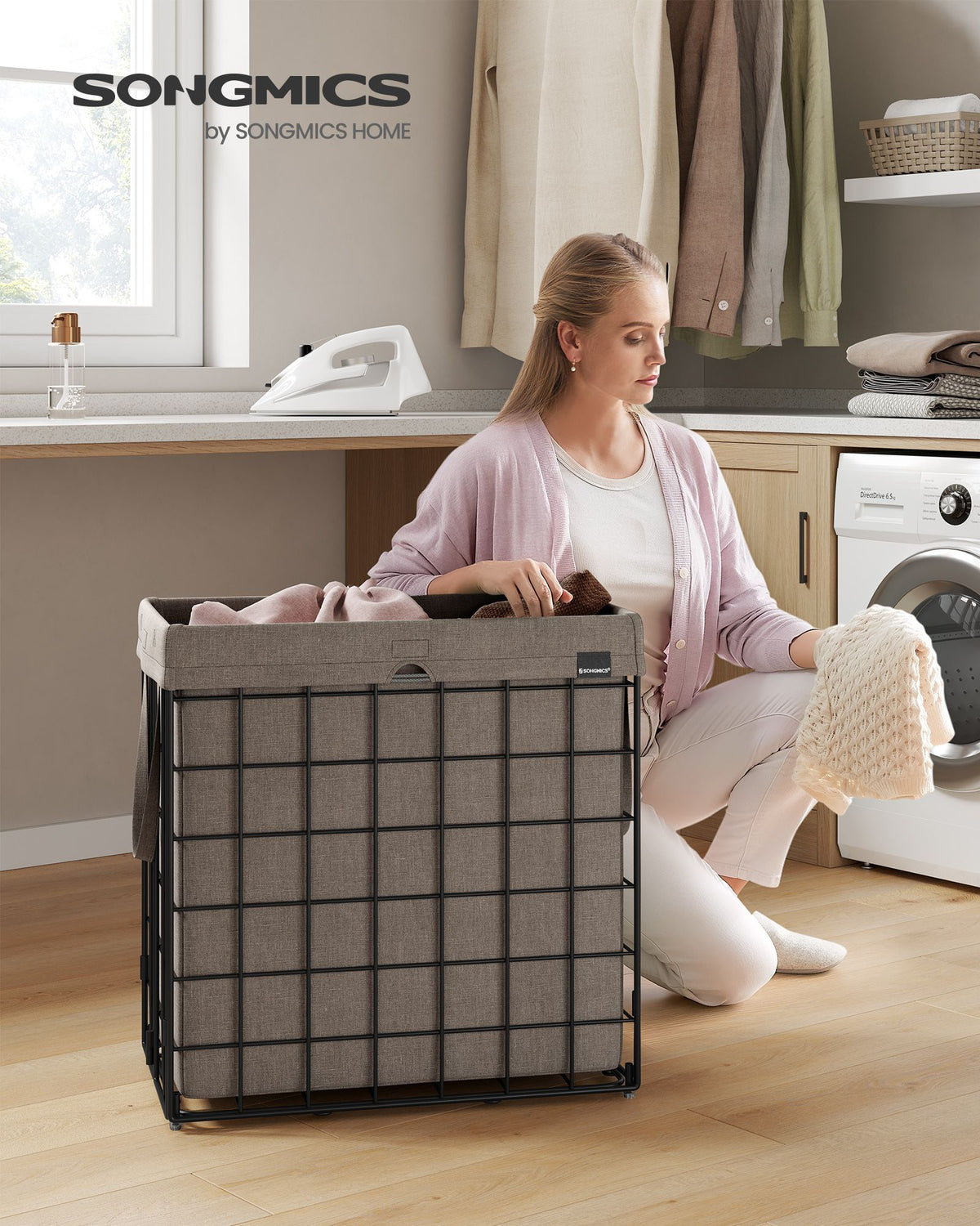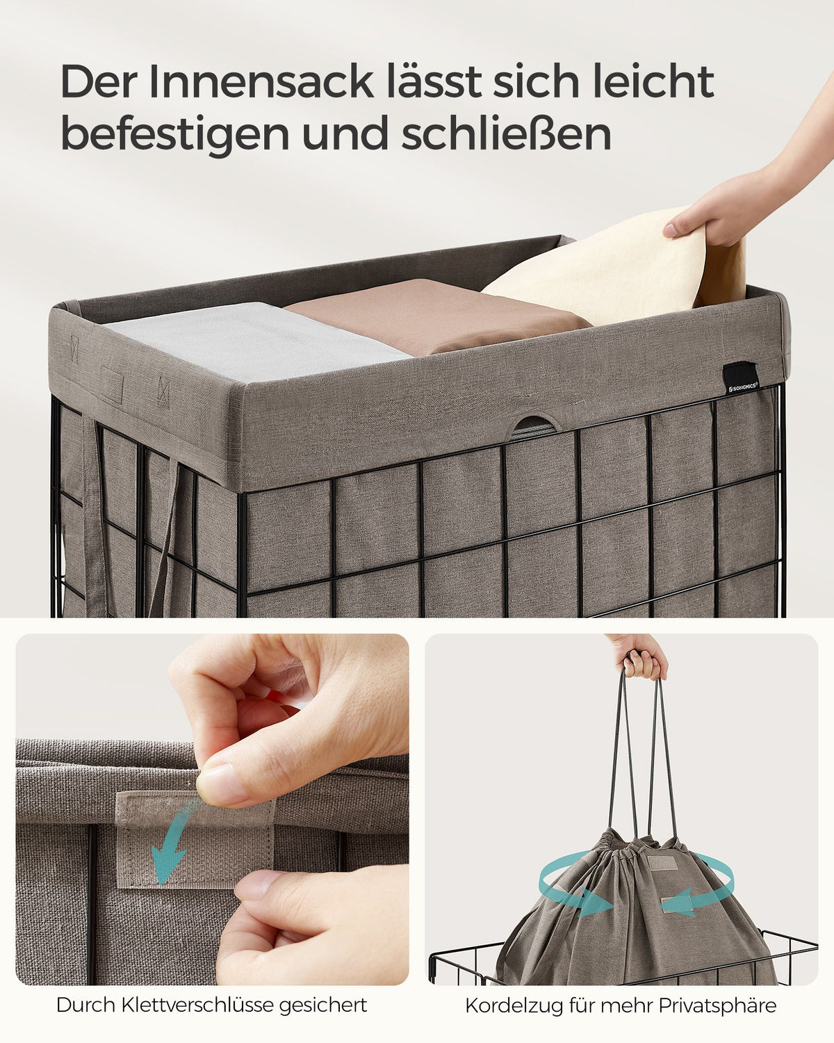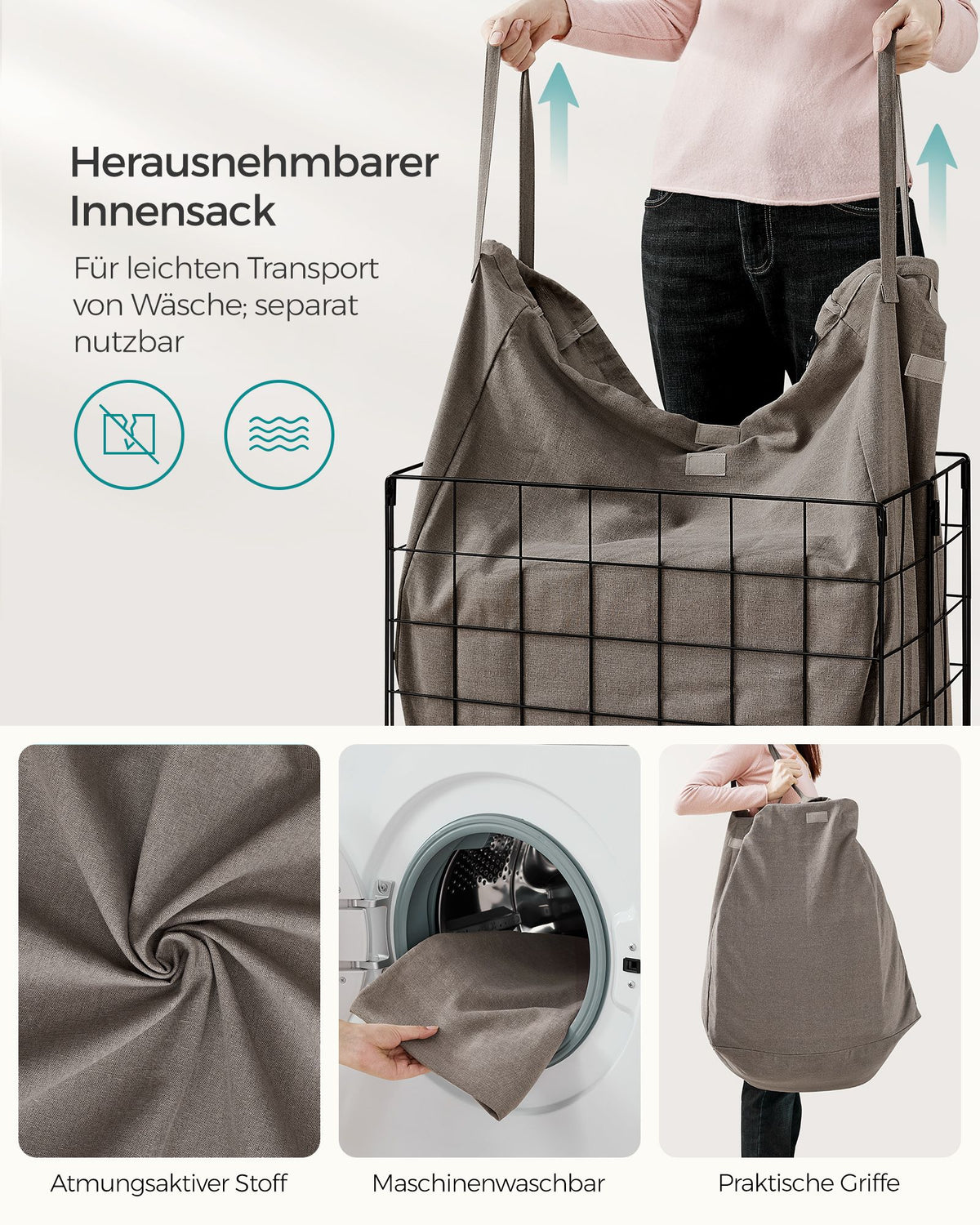 Wasmand 110 L opvouwbaar metalen draadframe zwart-kameelbruin 58 x 33 x 58 cm
