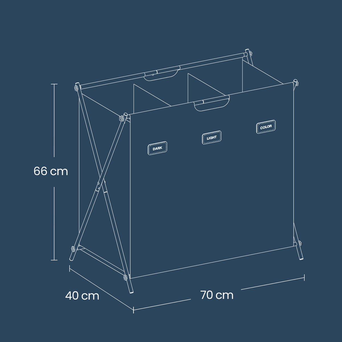 Wasmand 135 liter met 3 compartimenten leigrijs 70 x 40 x 66 cm - LCBB35130G01