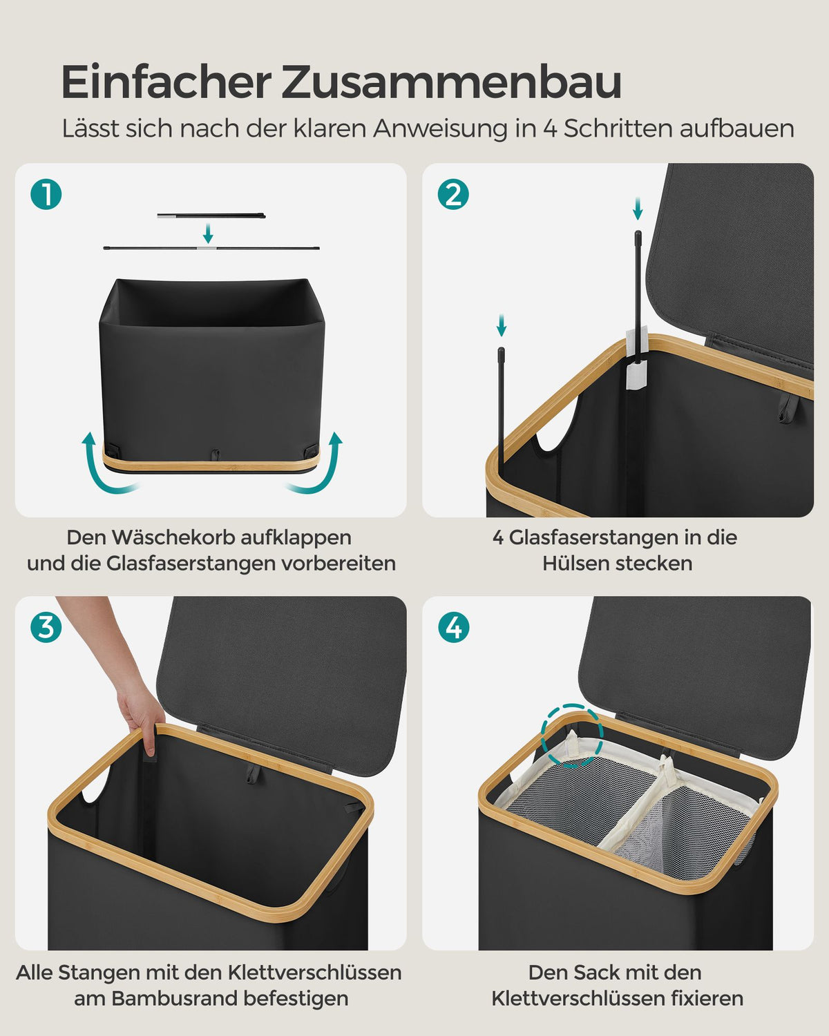 Wasmand 2 compartimenten met deksel inktzwart 5 cm