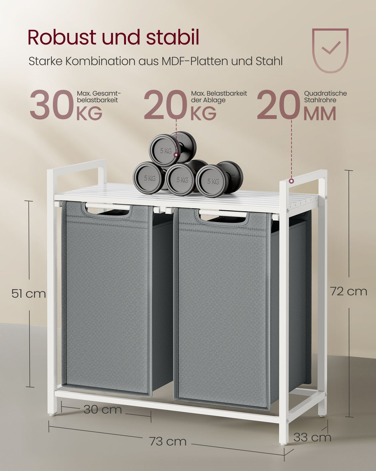 Wasmand 2 x 46 liter met plank 73 x 33 x 72 cm - B34BLH201W11