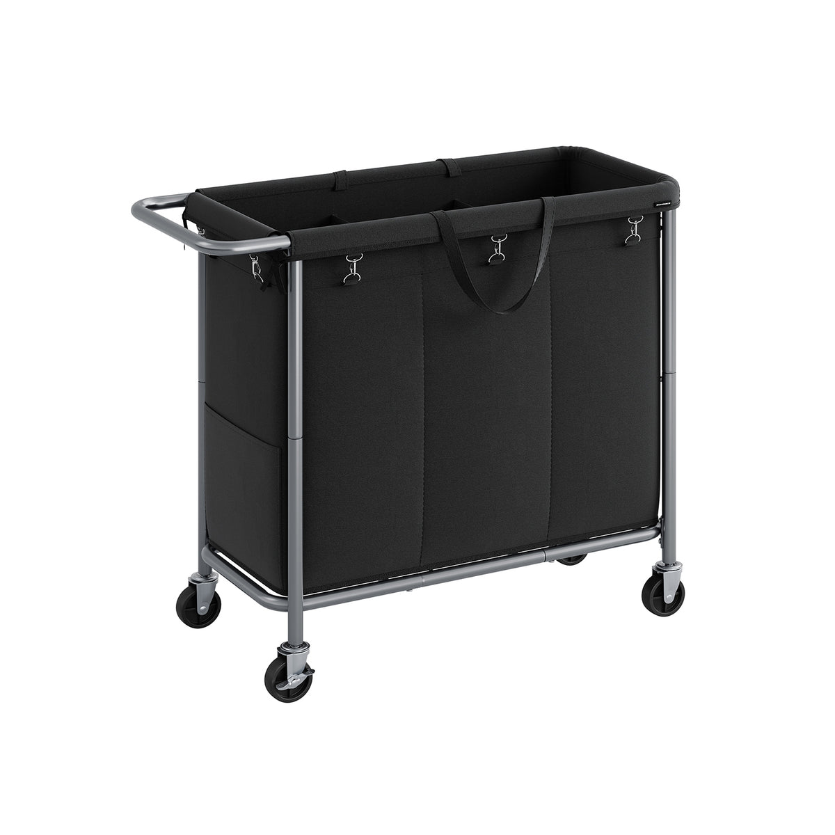 Wasmand 3 compartimenten 200 liter met wielen en handvat 91 x 39 x 81 cm