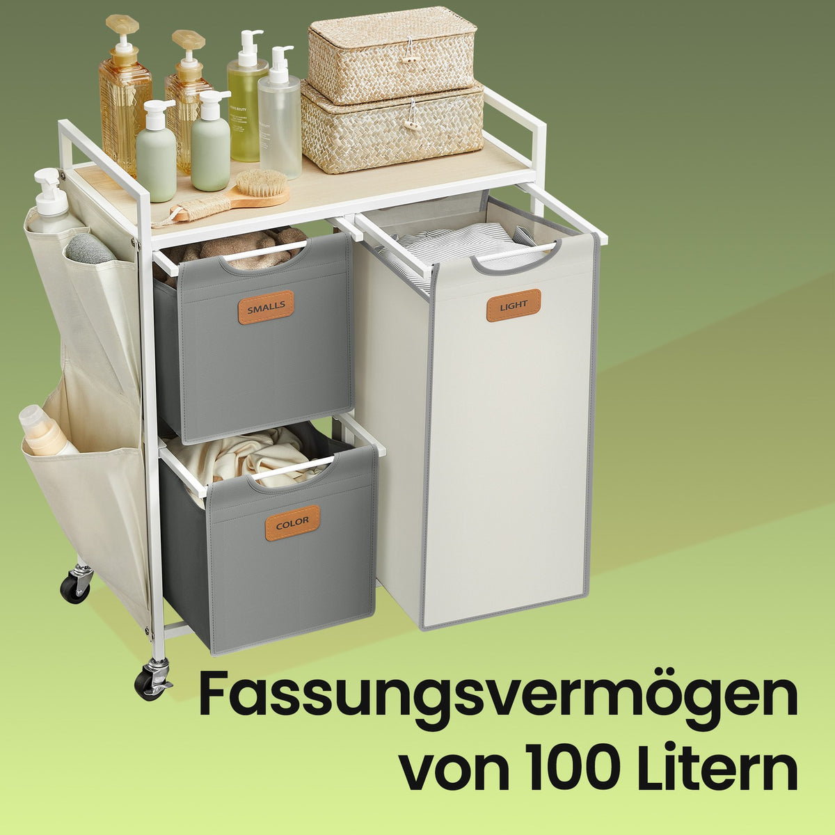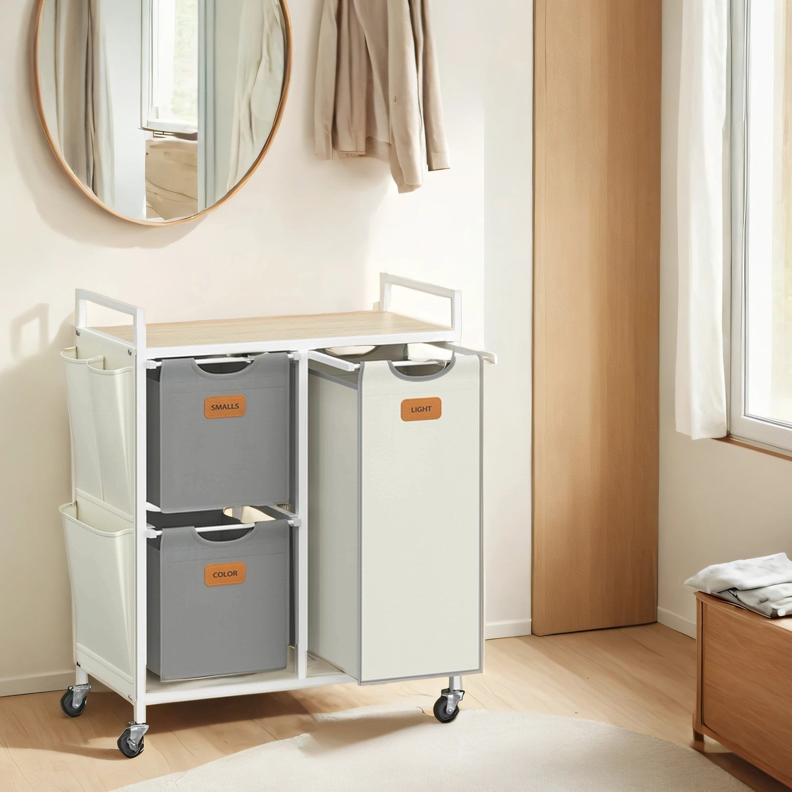 Wasmand 3 compartimenten naturel beige-duifgrijs-crèmewit 5 cm - BLHB35202G01