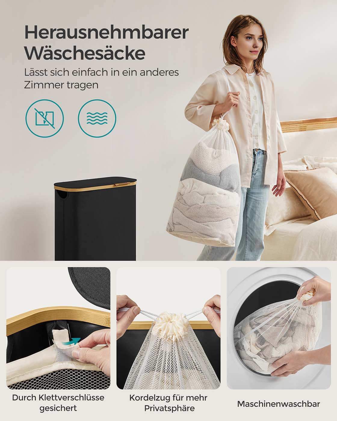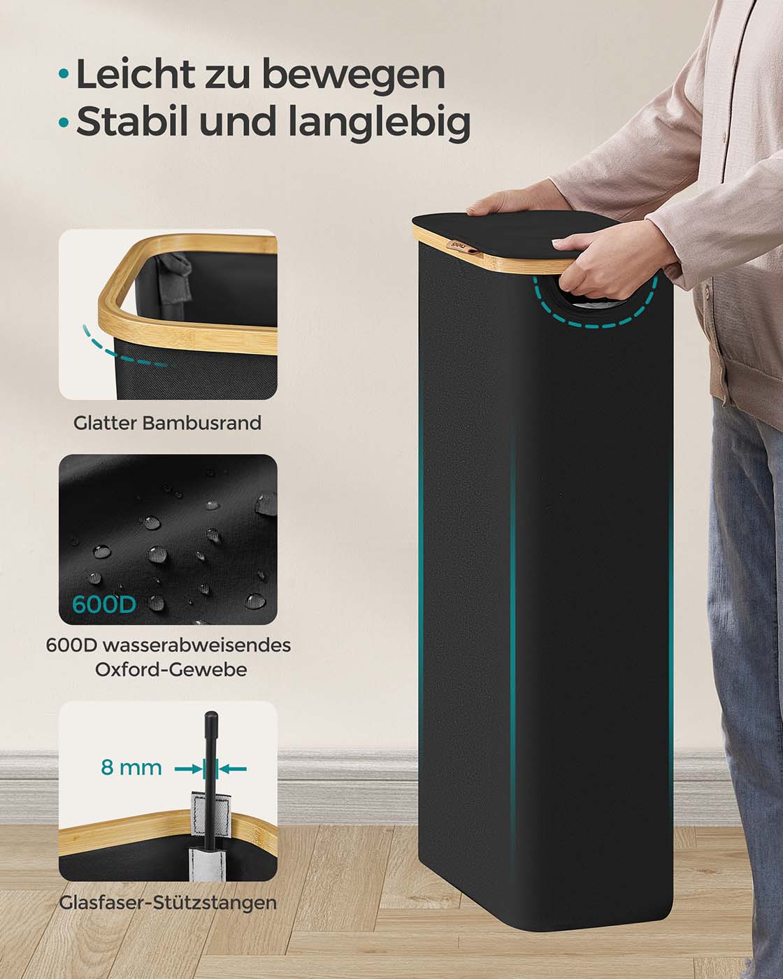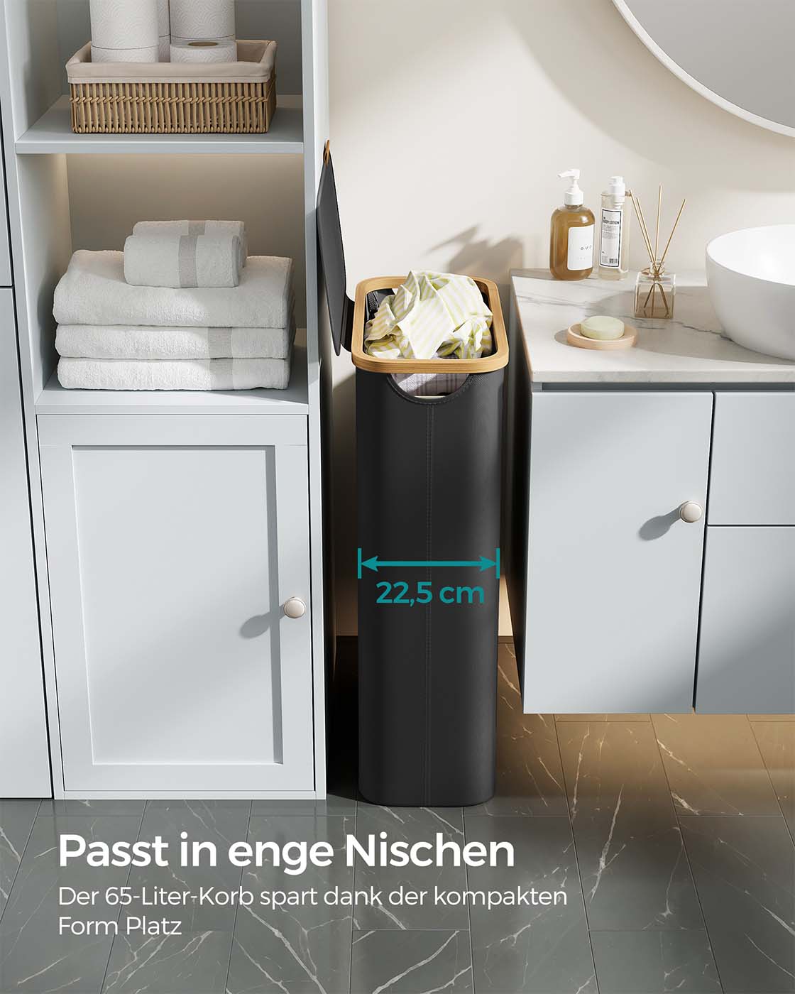Wasmand 65 L met deksel 42 x 22,5 x 70,5 cm inktzwart