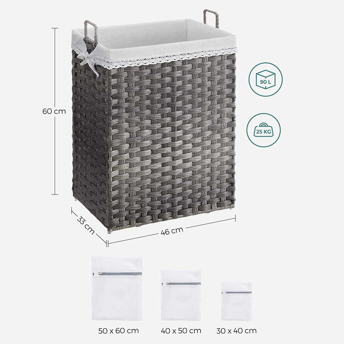 Wasmand 90 L grijs 46 x 33 x 60 cm