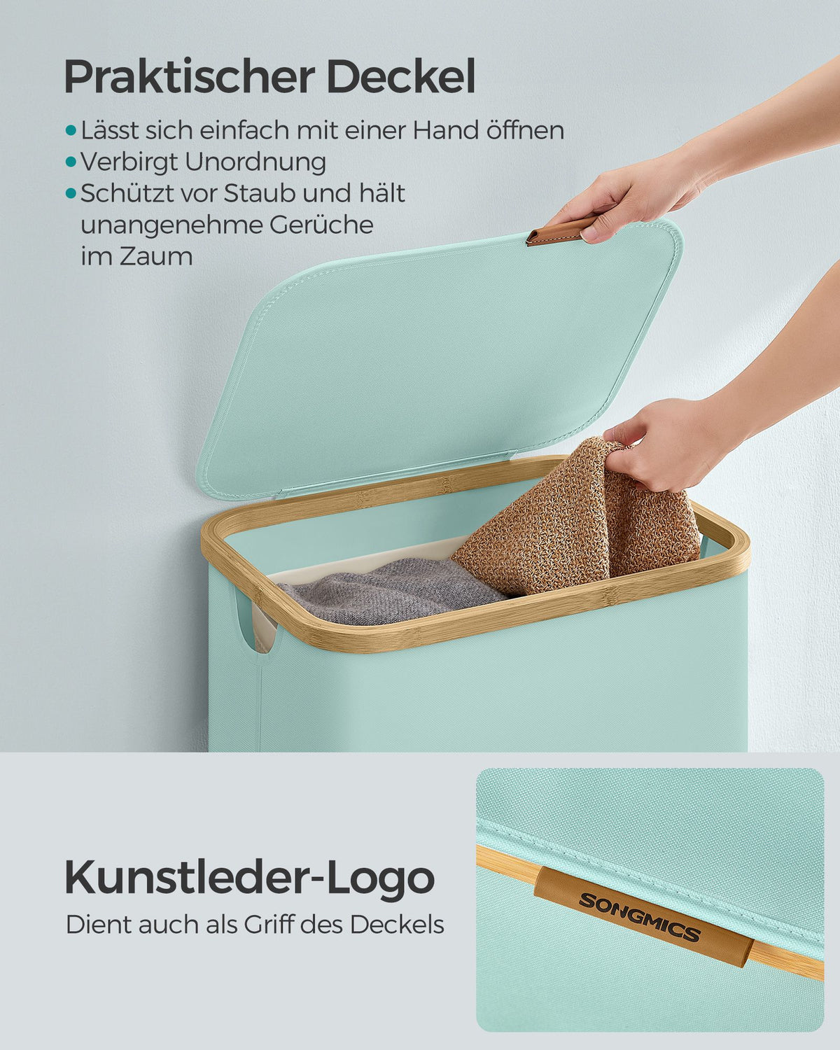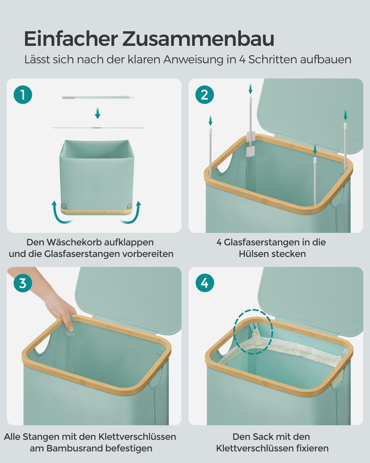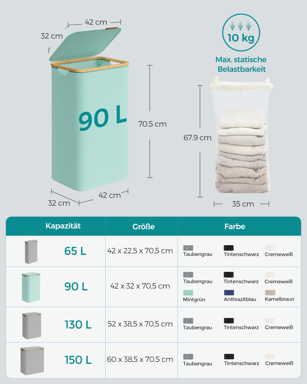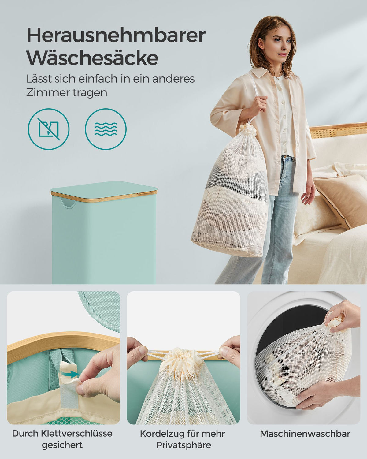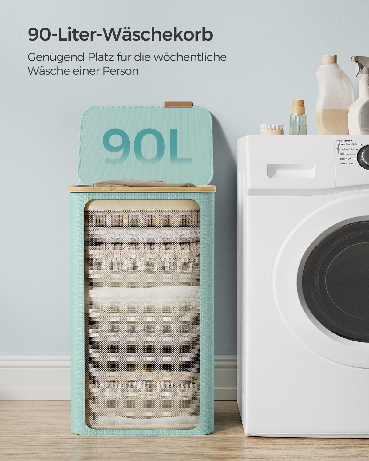 Wasmand 90 liter met uitneembare waszak mintgroen 5 cm
