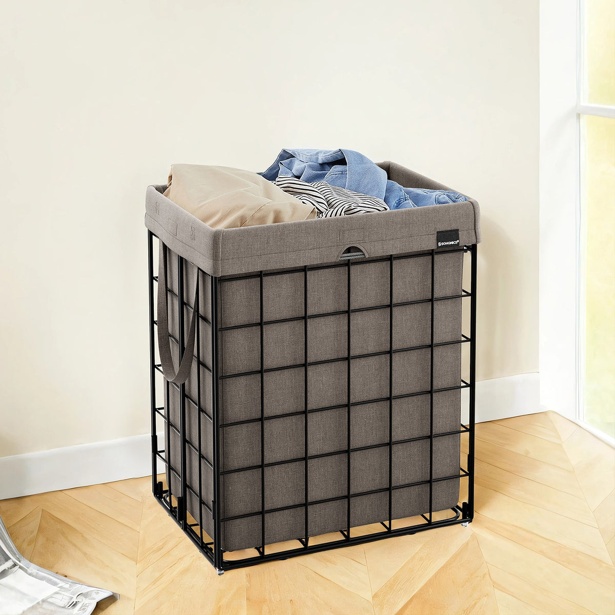 Wasmand 90L opvouwbaar metalen draadframe zwart-kameelbruin 48 x 33 x 58 cm - LCBB35190N01