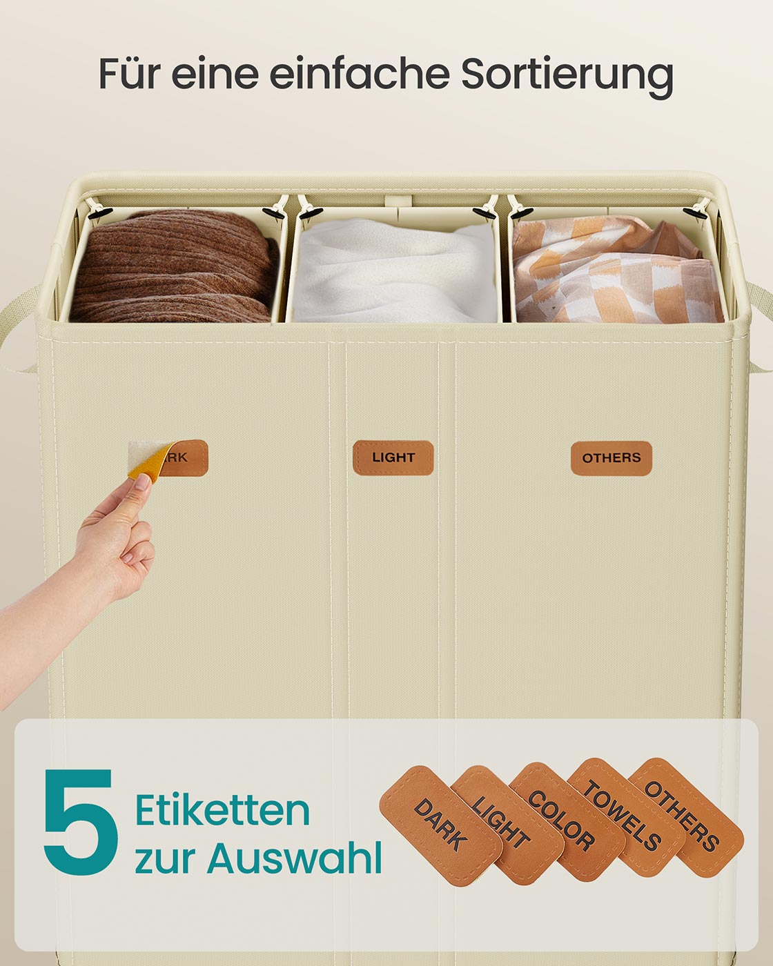 Wasmand met drie compartimenten, deksel en wasbare binnenzak 64 x 33 x 75 cm - RLH013W01