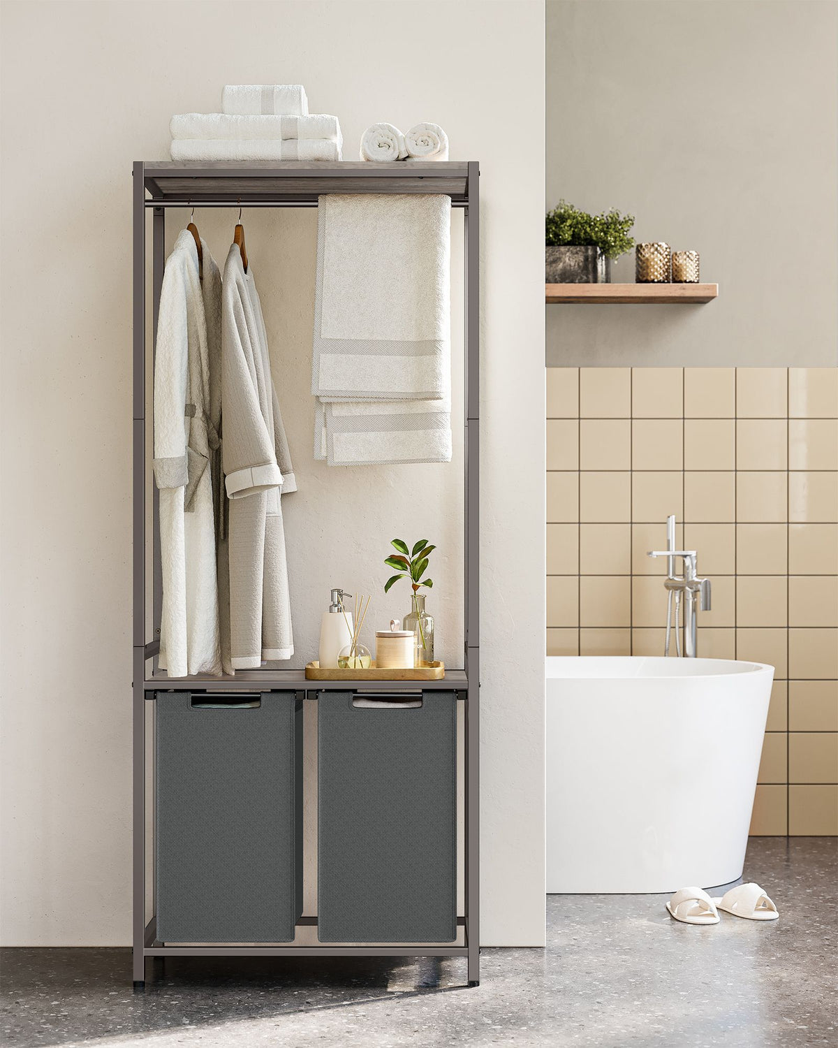 Wasmand met kapstok, greige gevlekt leigrijs 73 x 33 x 177 cm - B34BLH231G02