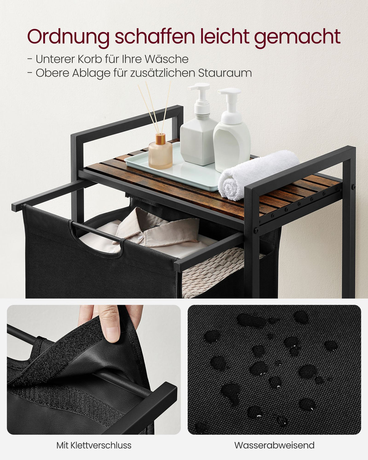 Wasmand met plank vintage bruin-zwart 73 x 33 x 72 cm