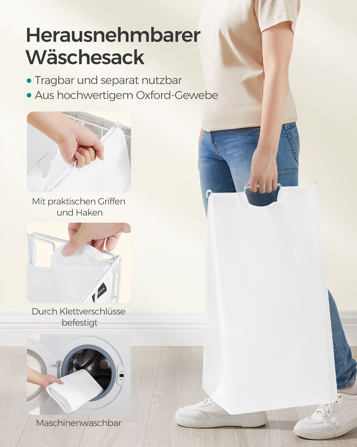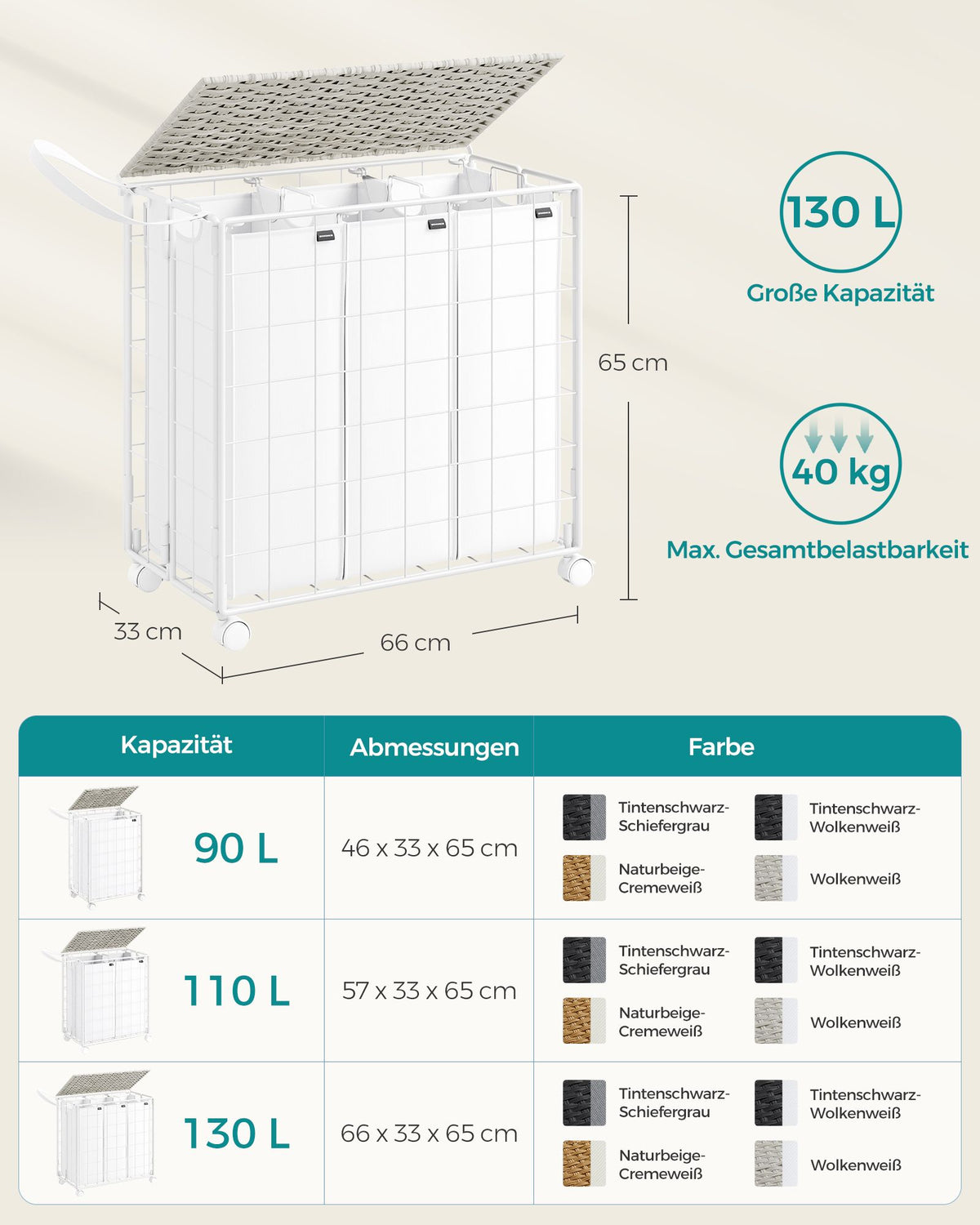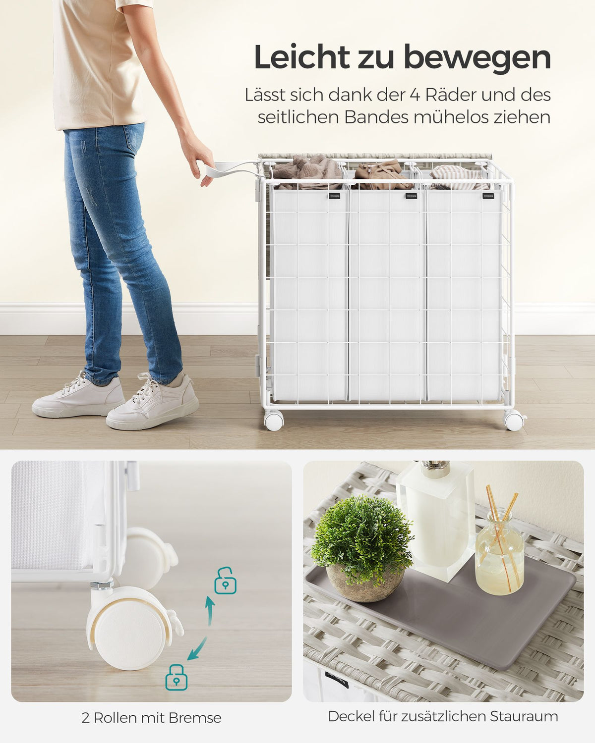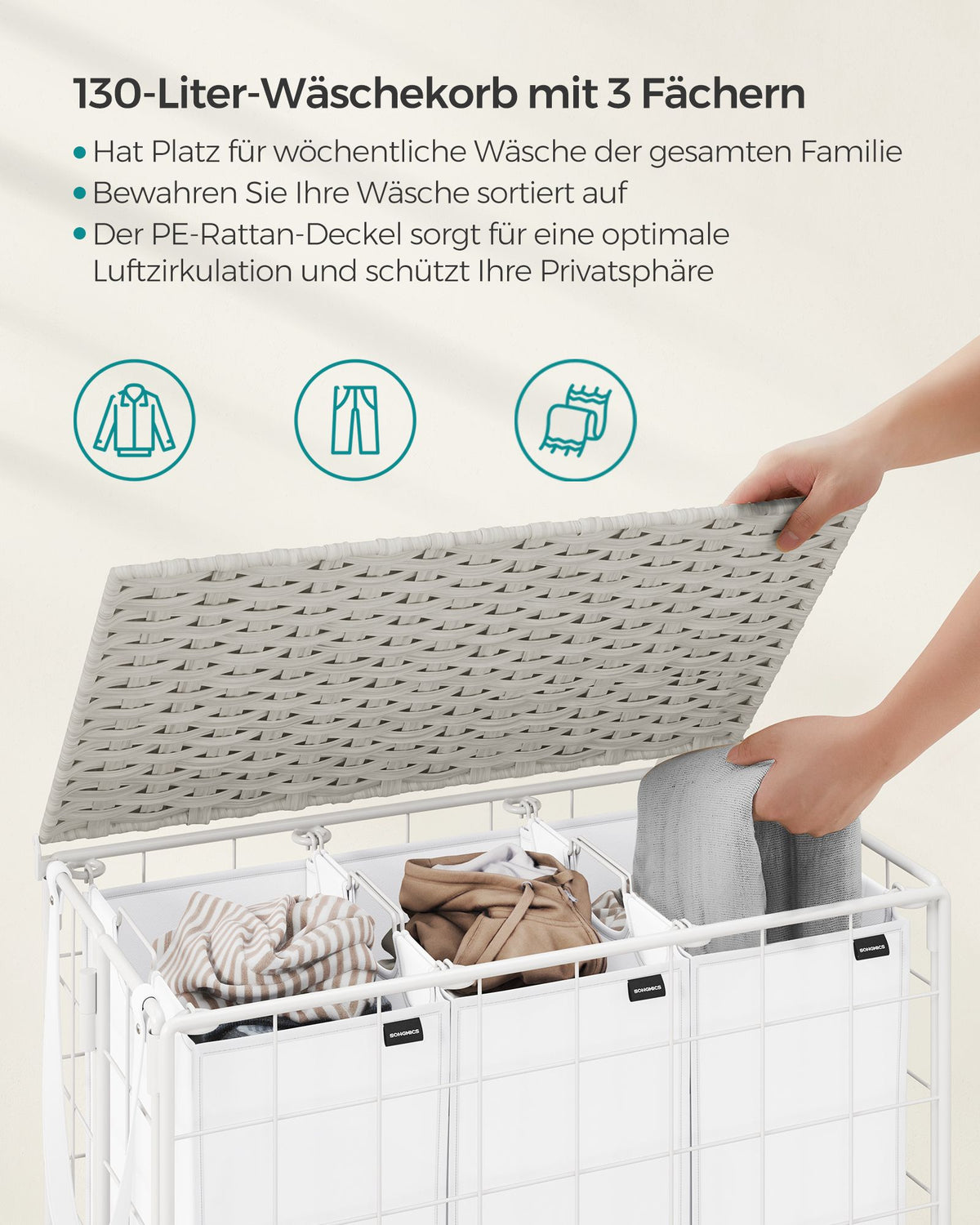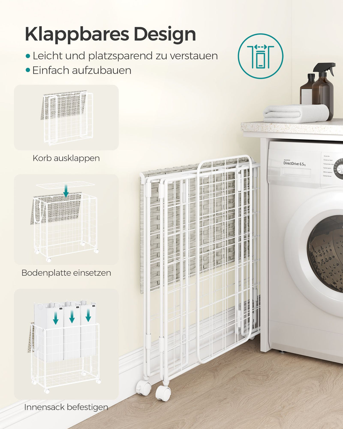 Wasmand met wielen wolkwit 57 x 33 x 65 cm