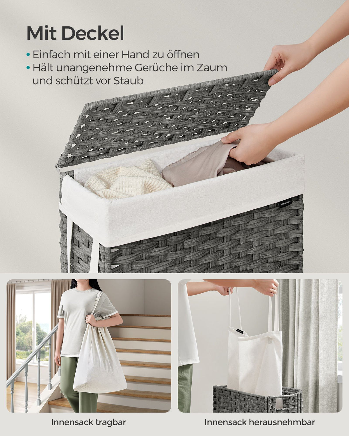 Wasmand van synthetisch rotan met deksel 46 x 20 x 61 cm