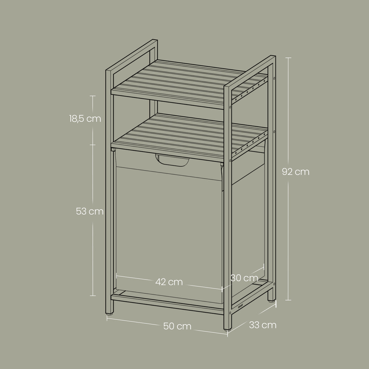 Wasmand, wasverzamelaar met 2 planken, waszak uitschuifbaar en uitneembaar 50 x 33 x 92 cm