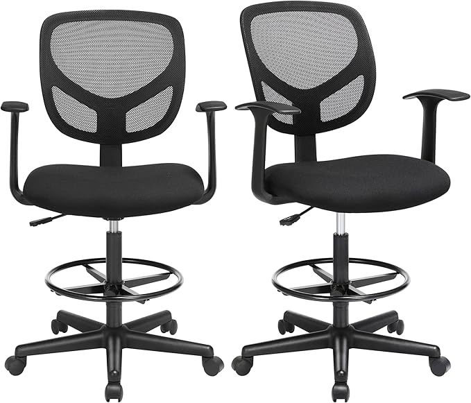 Werkstoel, set van 2, ergonomische bureaustoel met armleuningen, 120 kg, zwart OBN25BK-2