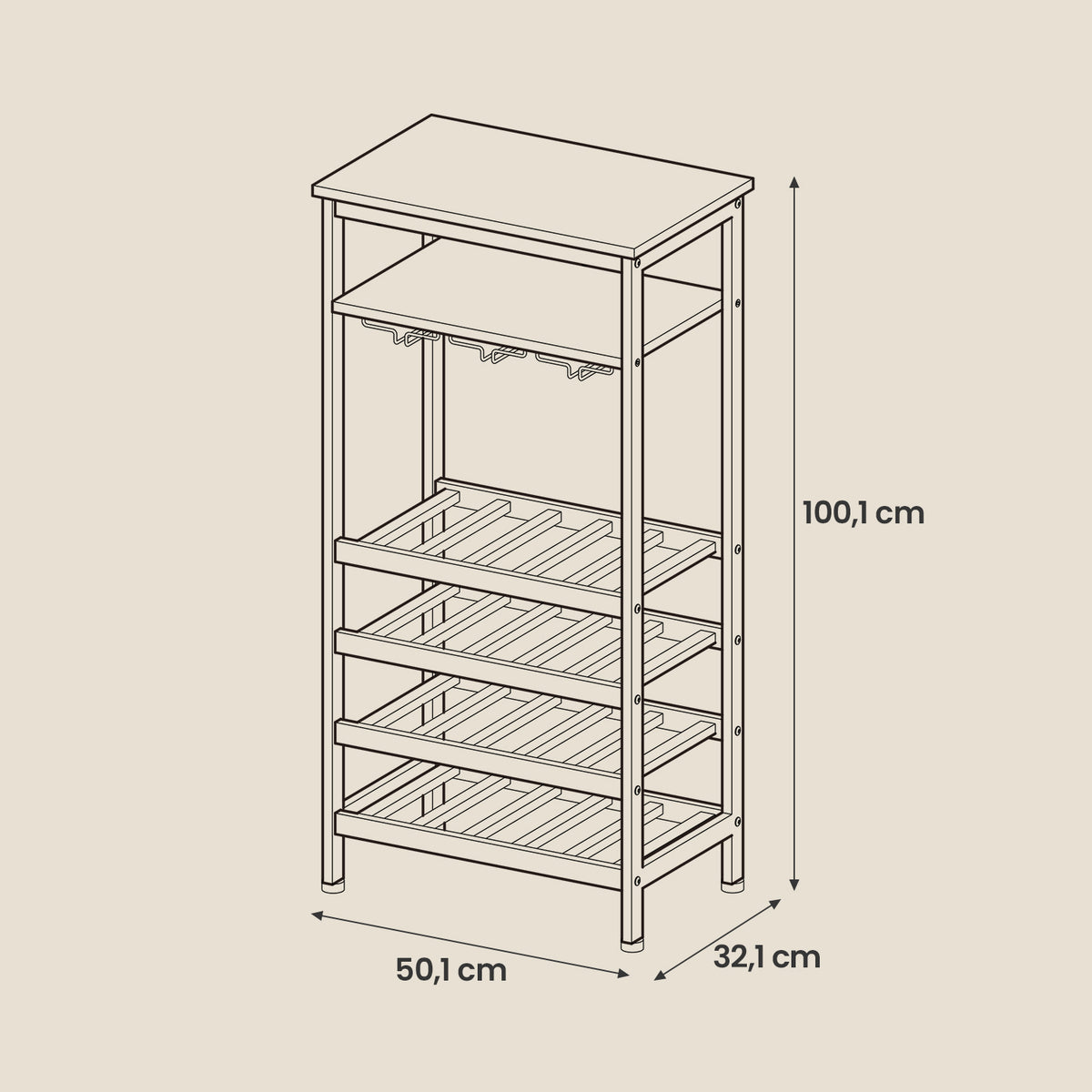 Wijnrek voor 20 flessen, wijnrek met glashouder, voor kelder 50 x 32 x 100 cm