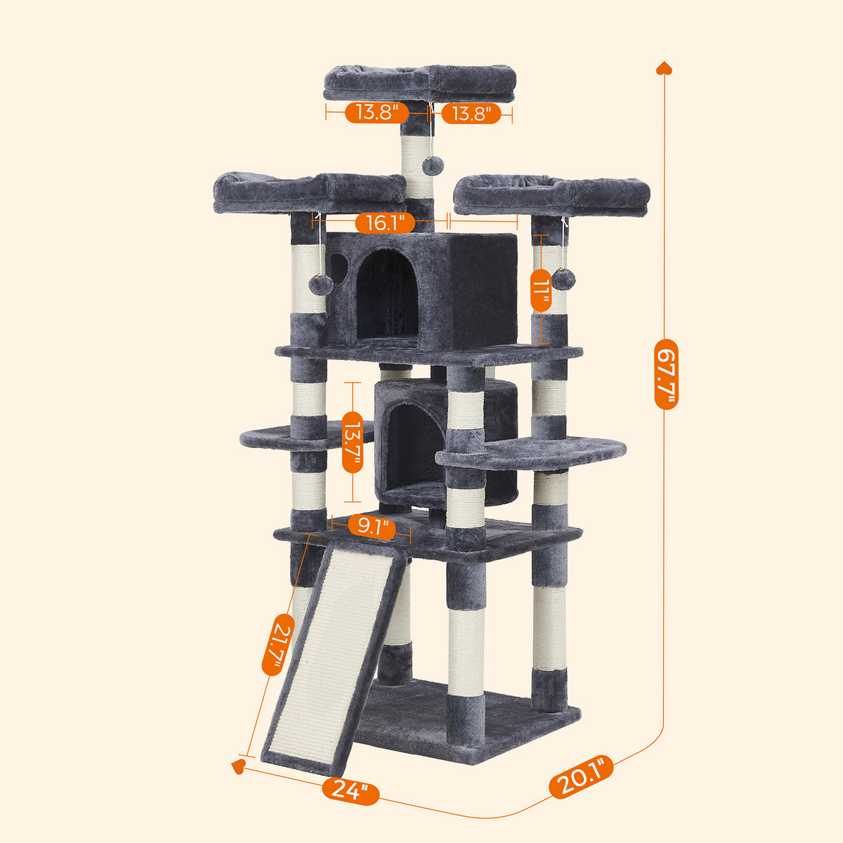 XXL Kattenboom 172 cm Rookgrijs