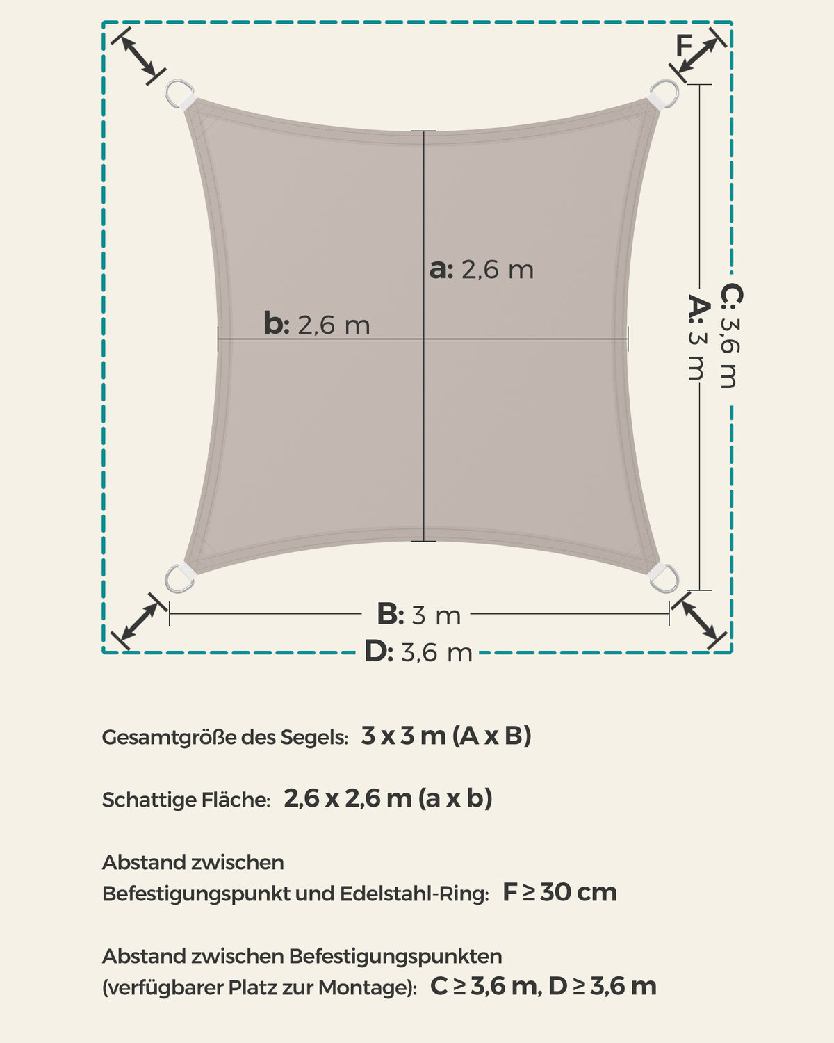 Zonnezeil 300 x 400 cm UV-bescherming 93% rechthoekig rookgrijs 300 x 400 cm - GSH33TP