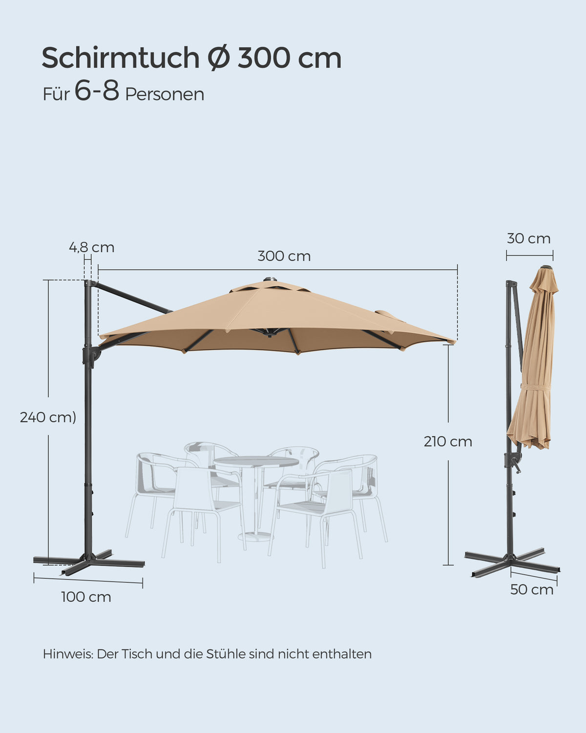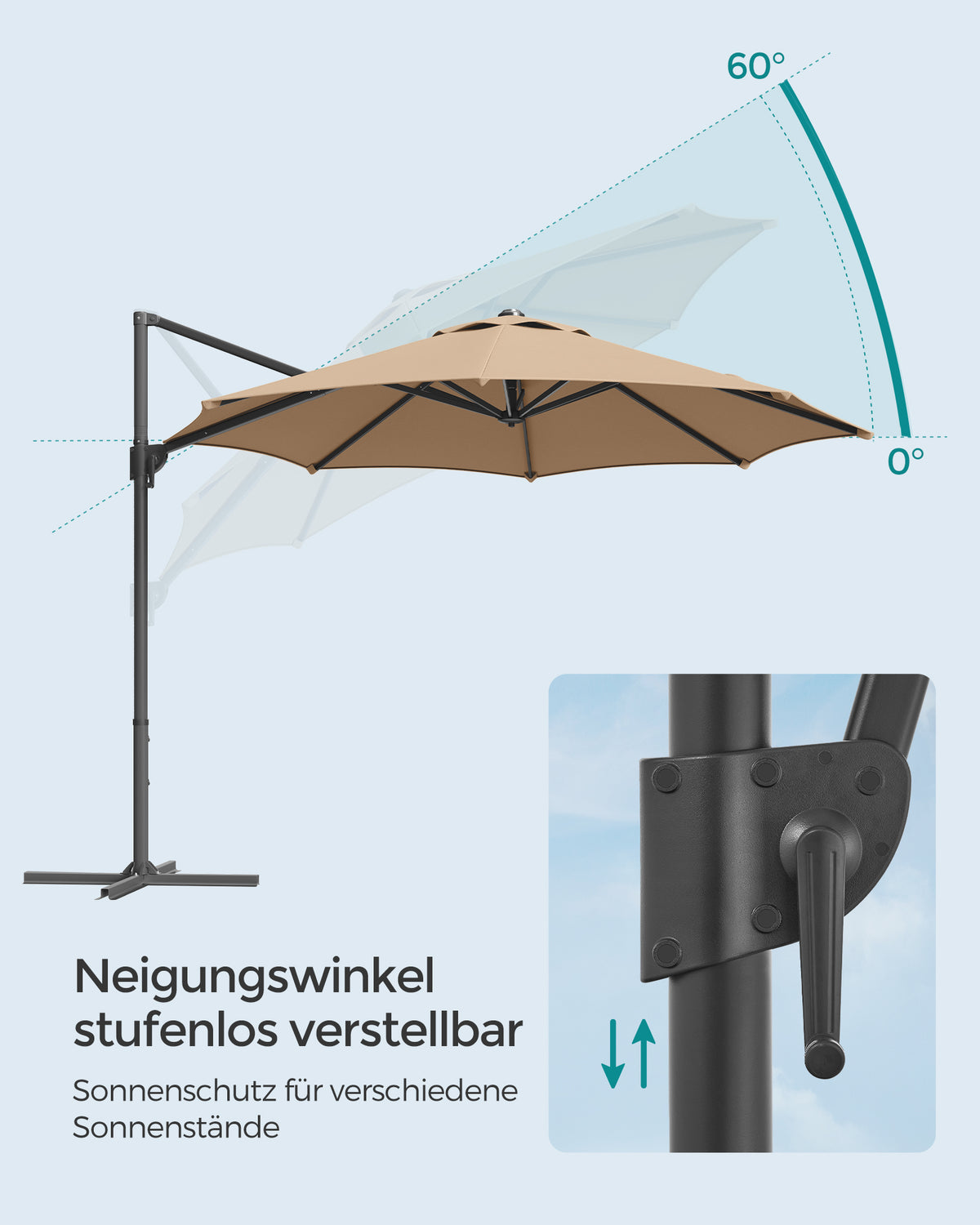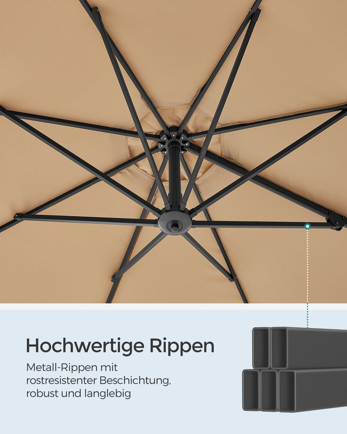 Zwenkparaplu UPF 50+ met zwengel en kruisvoet camelbruin 300 cm